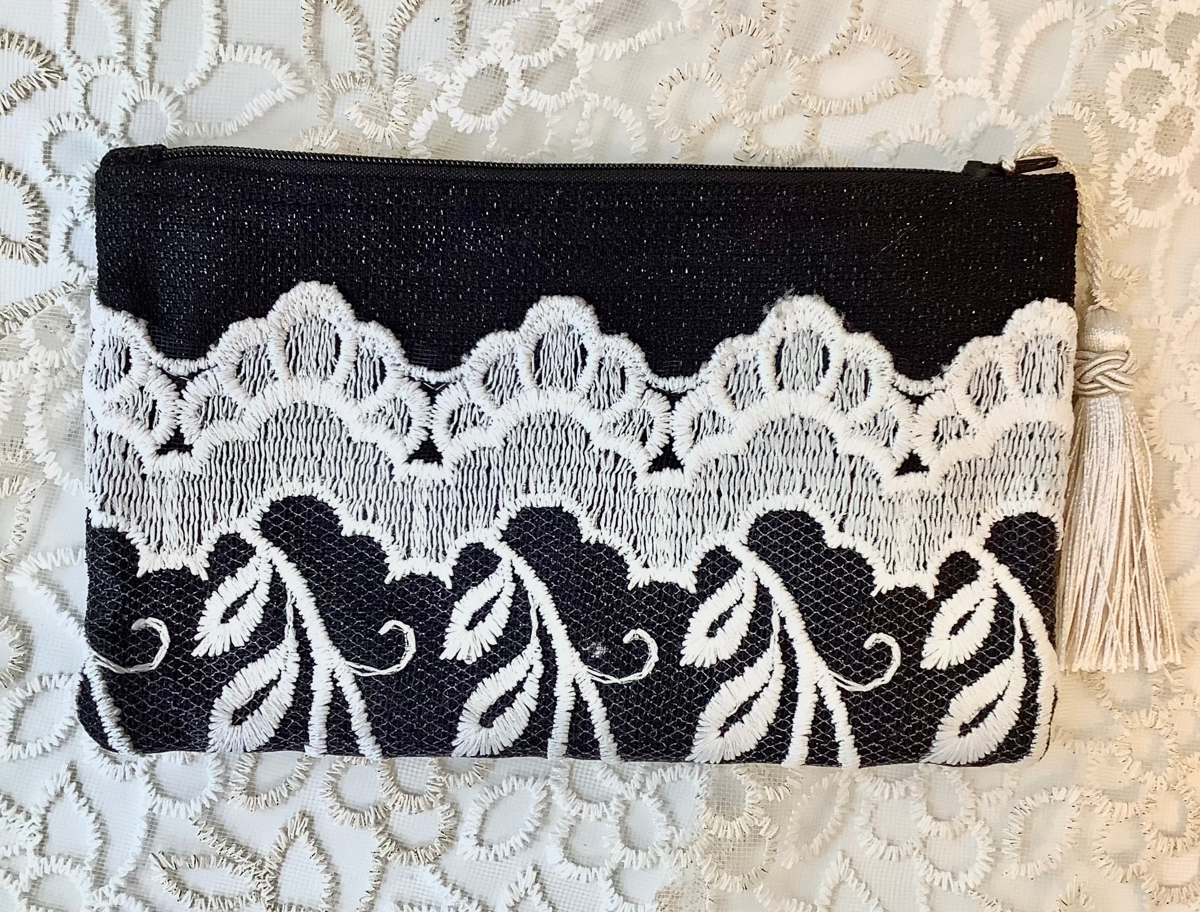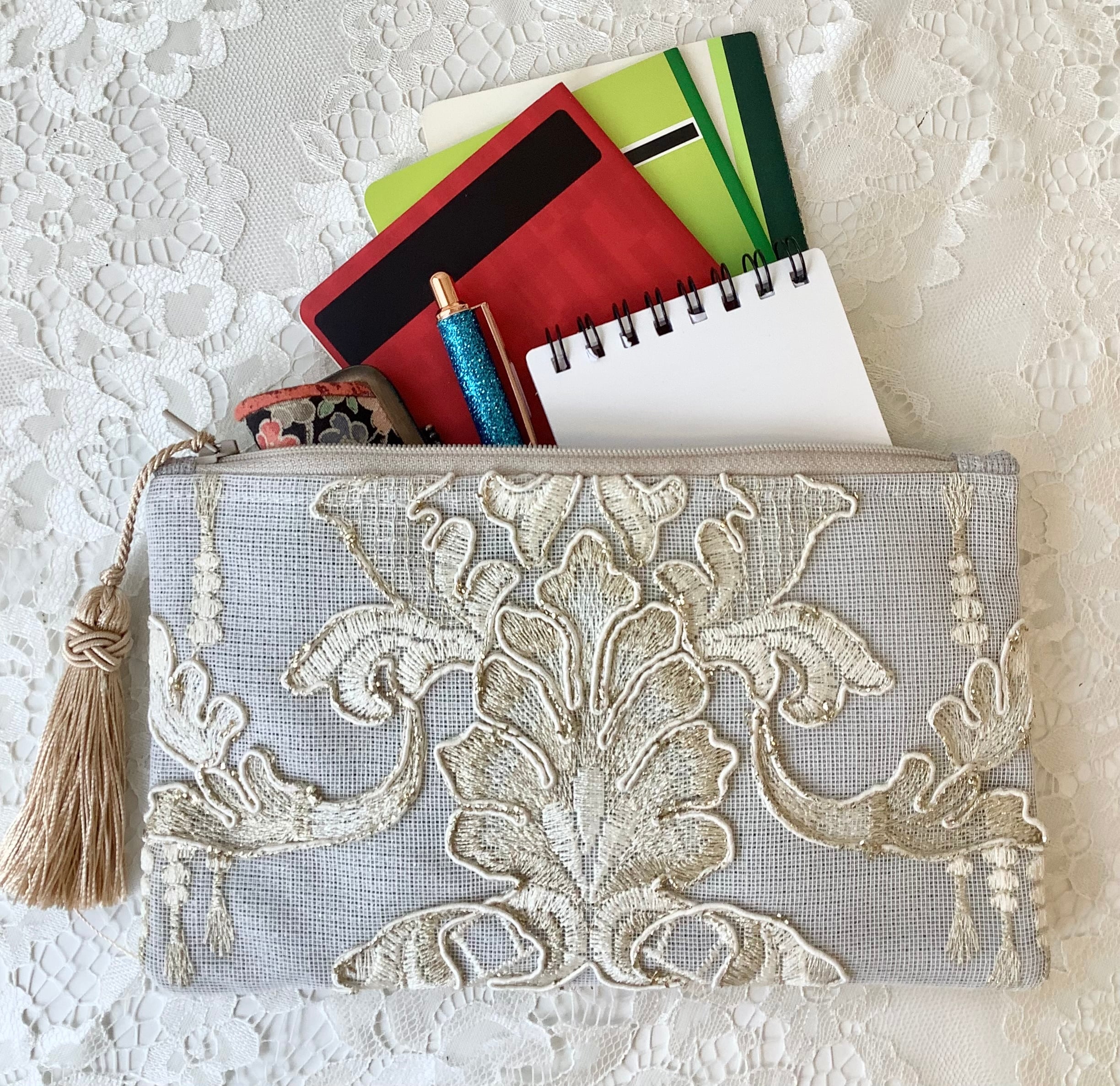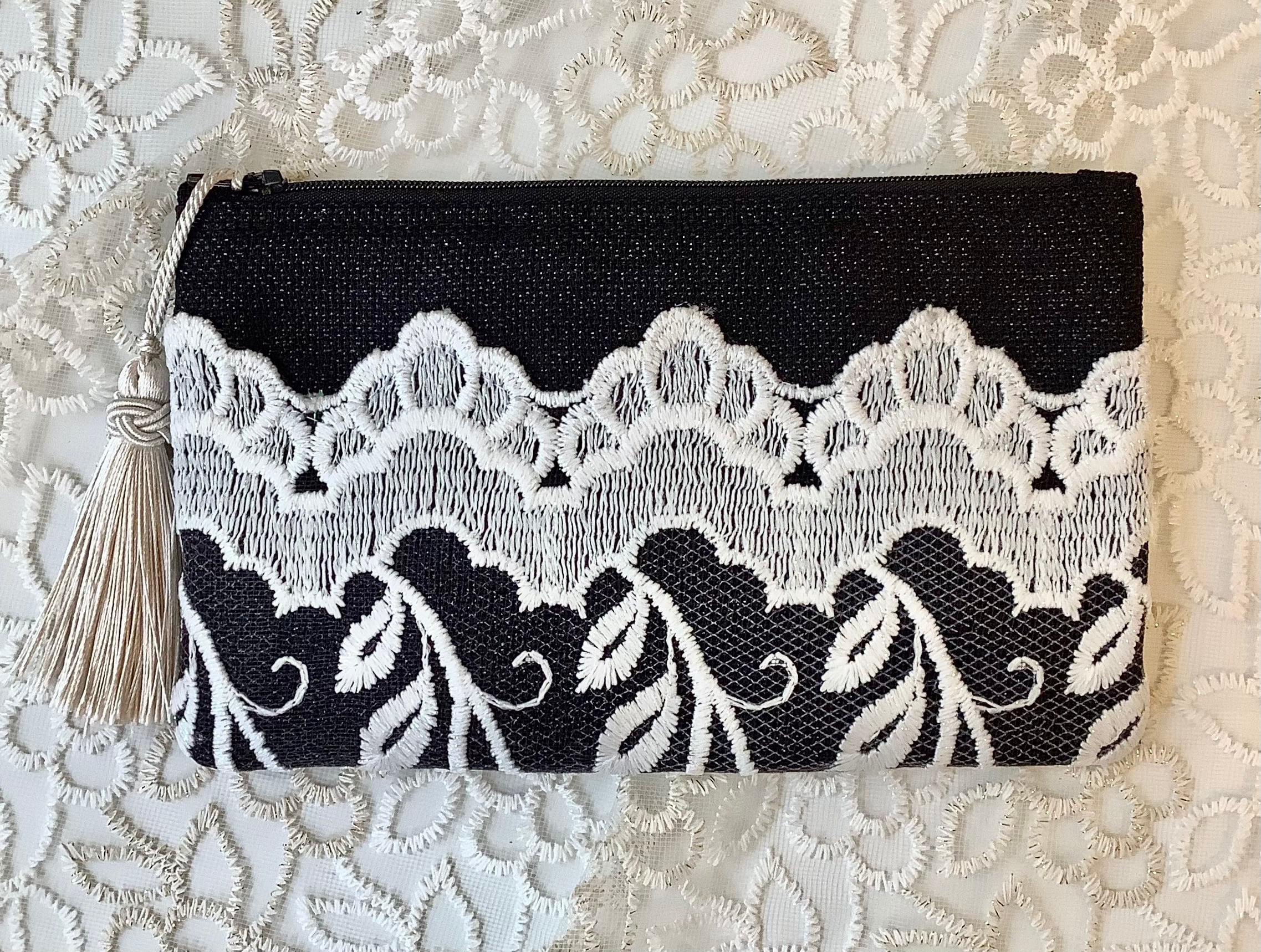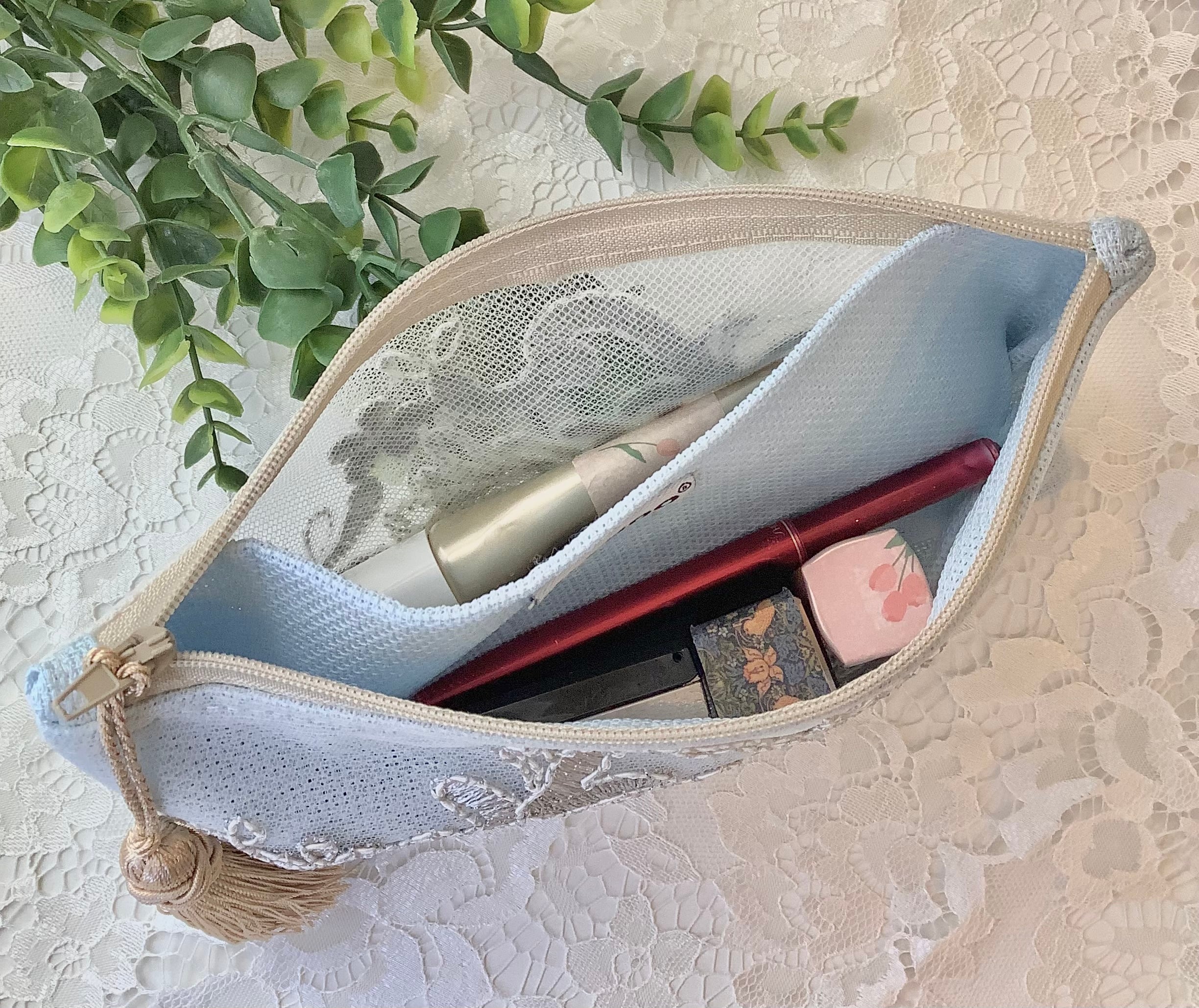 デザイン性と機能性を兼ね備えたこのポーチは、トルコの伝統的なカーテンレースを使った、アップサイクル商品です。