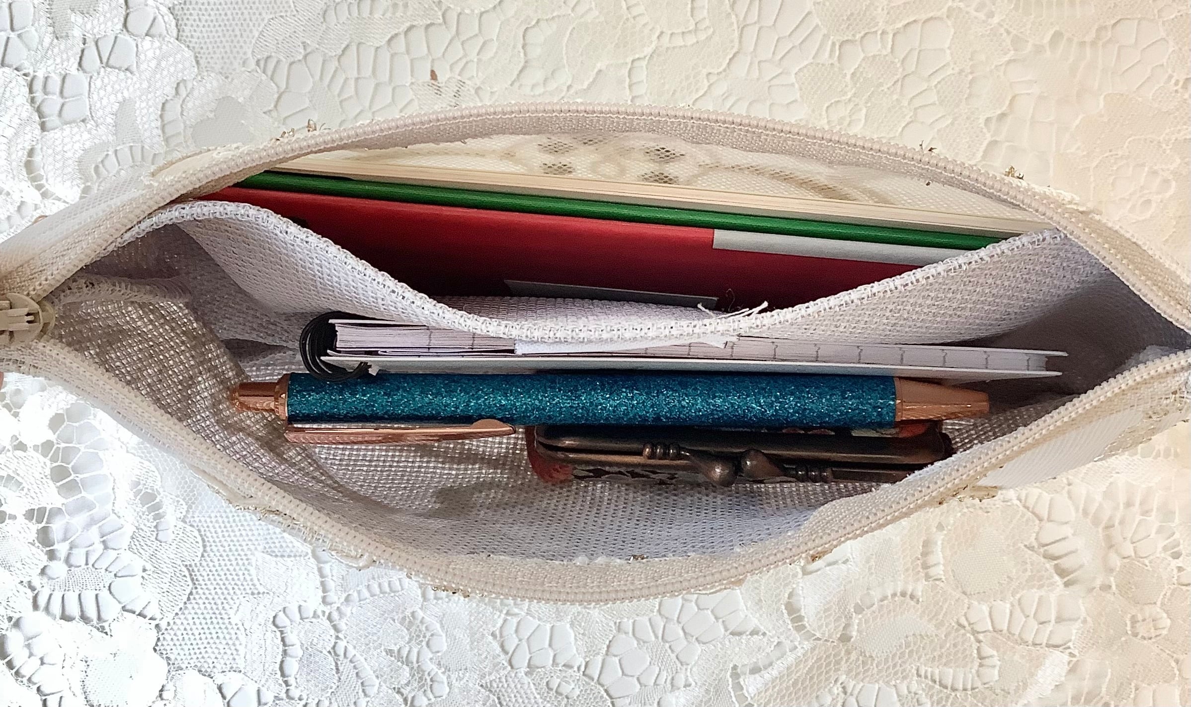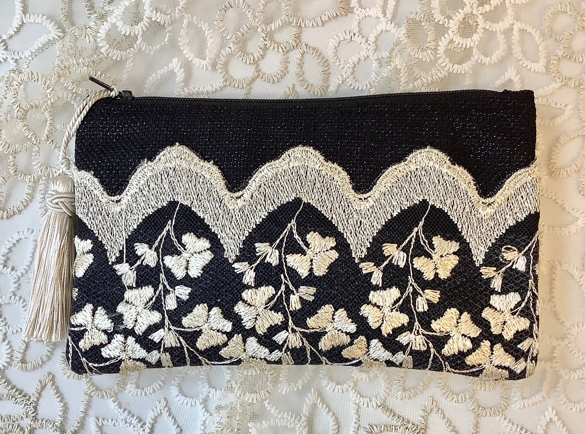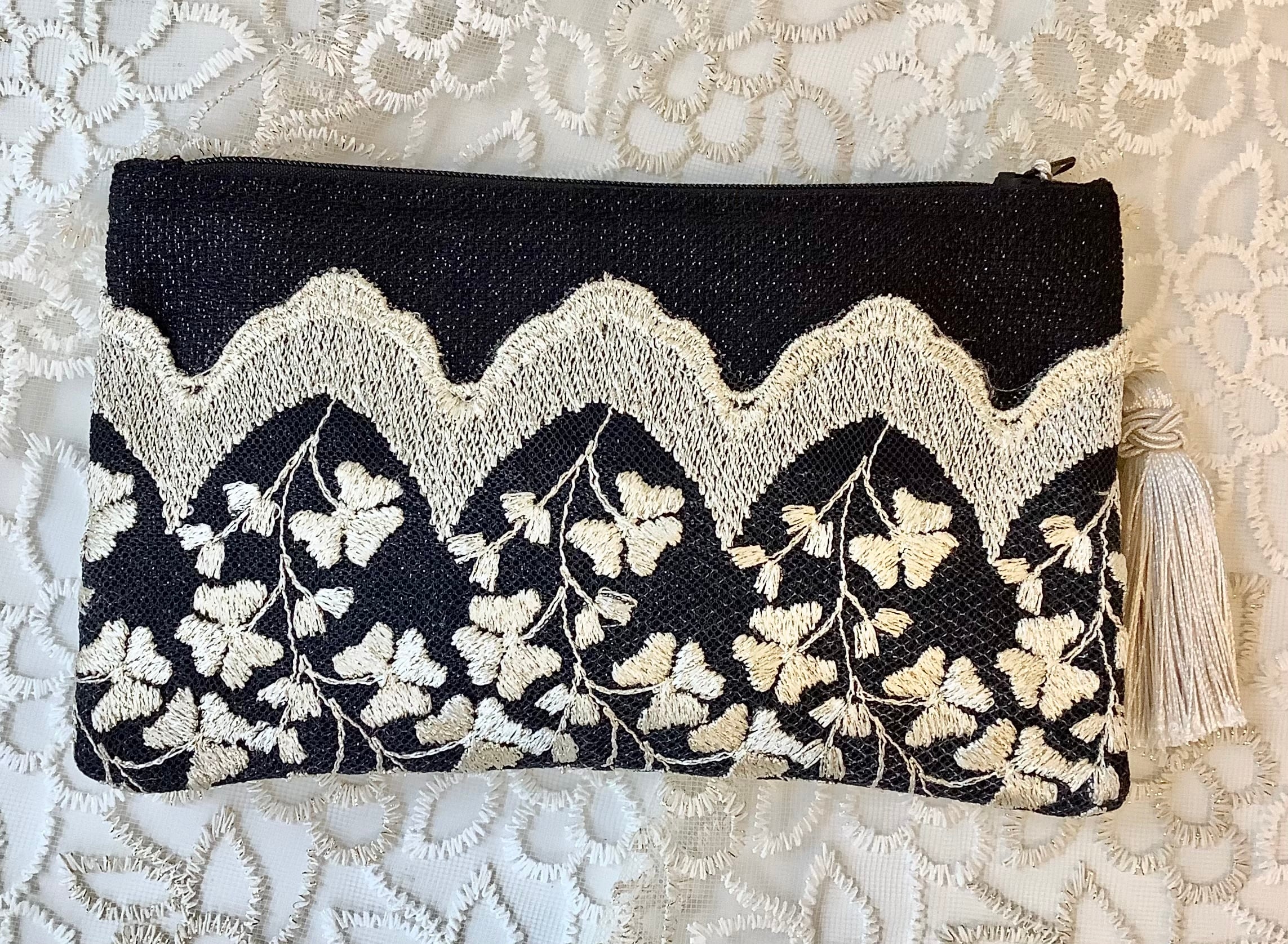 デザイン性と機能性を兼ね備えたこのポーチは、トルコの伝統的なカーテンレースを使った、アップサイクル商品です。