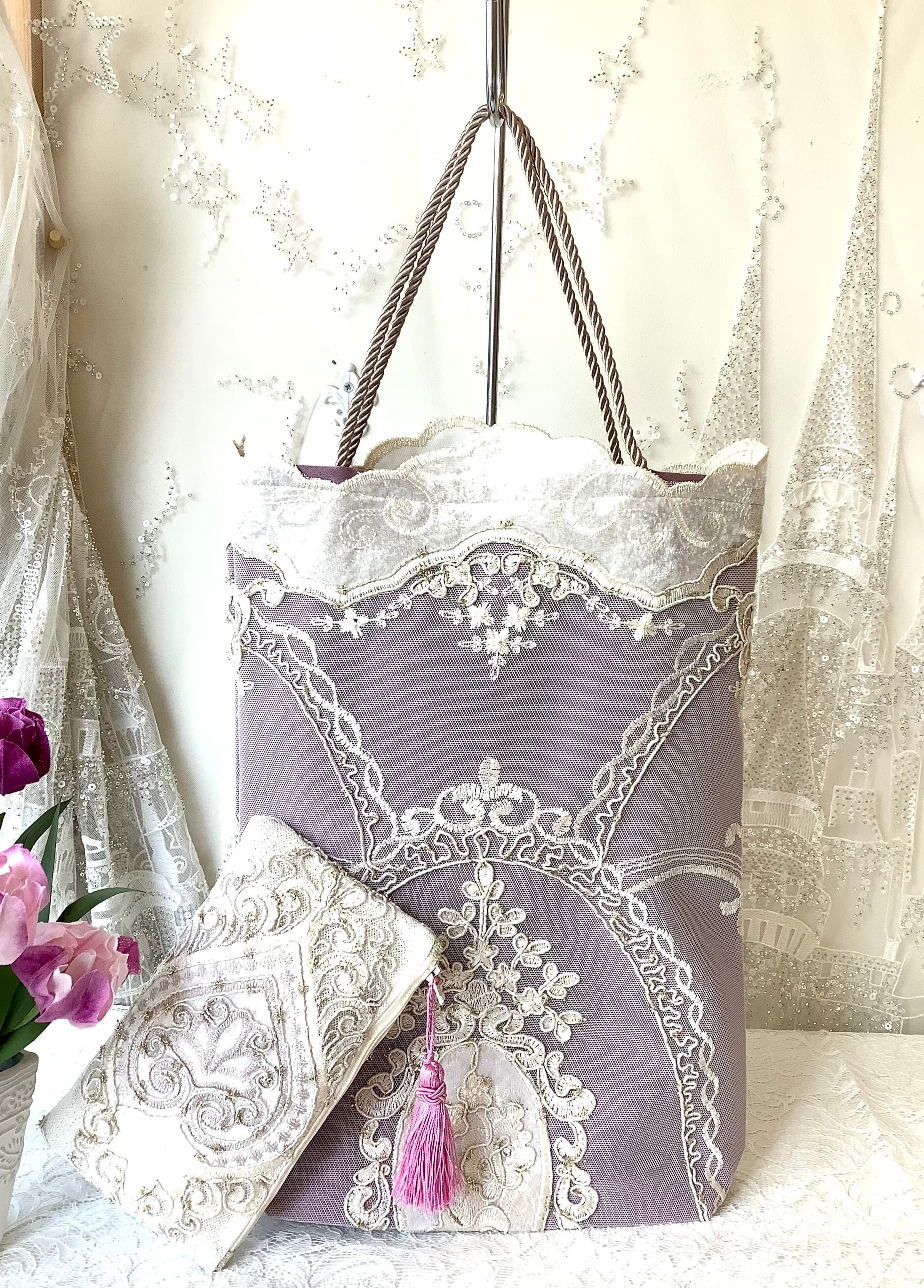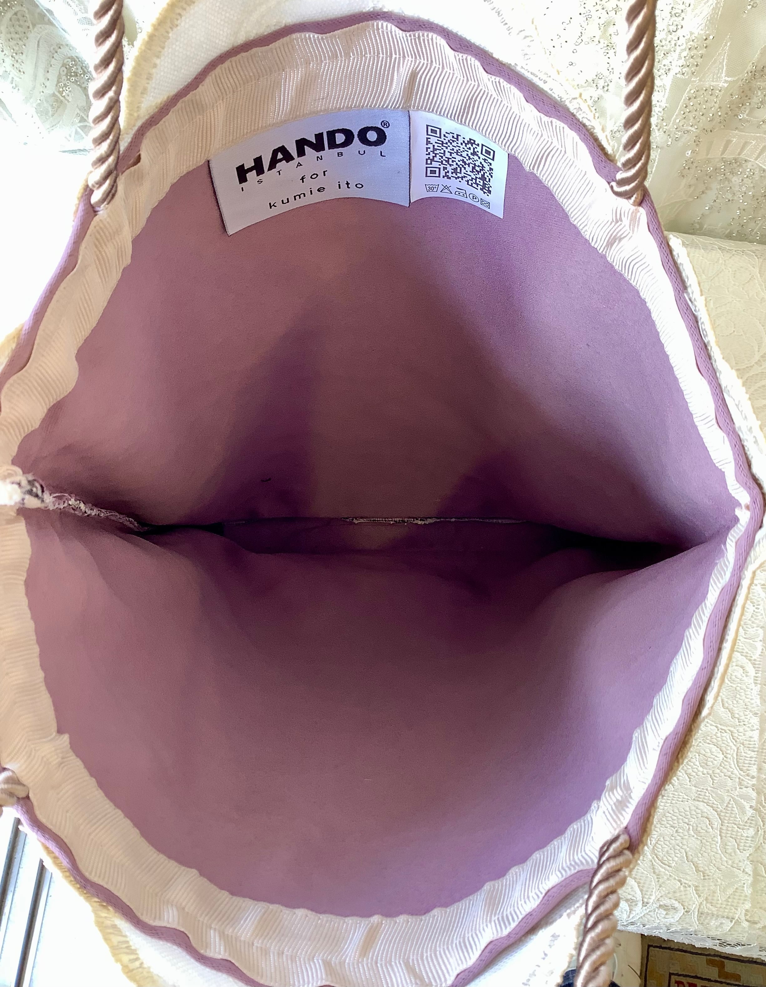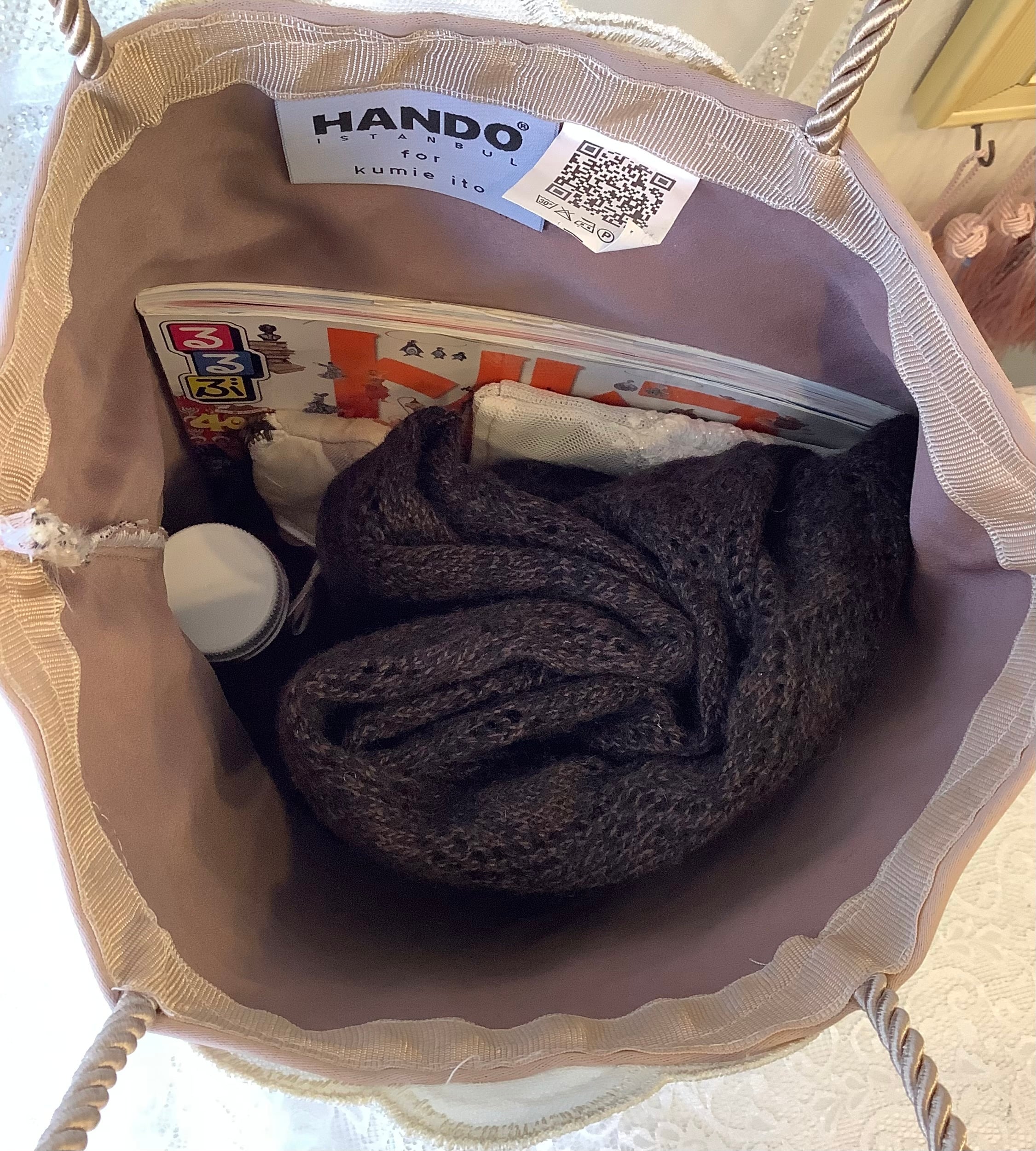 内側にはポケットはありませんが、マチもあるので、かさばる羽織ものやショールなどもすっぽりおさまる。華やかなサブバッグにもおすすめです。