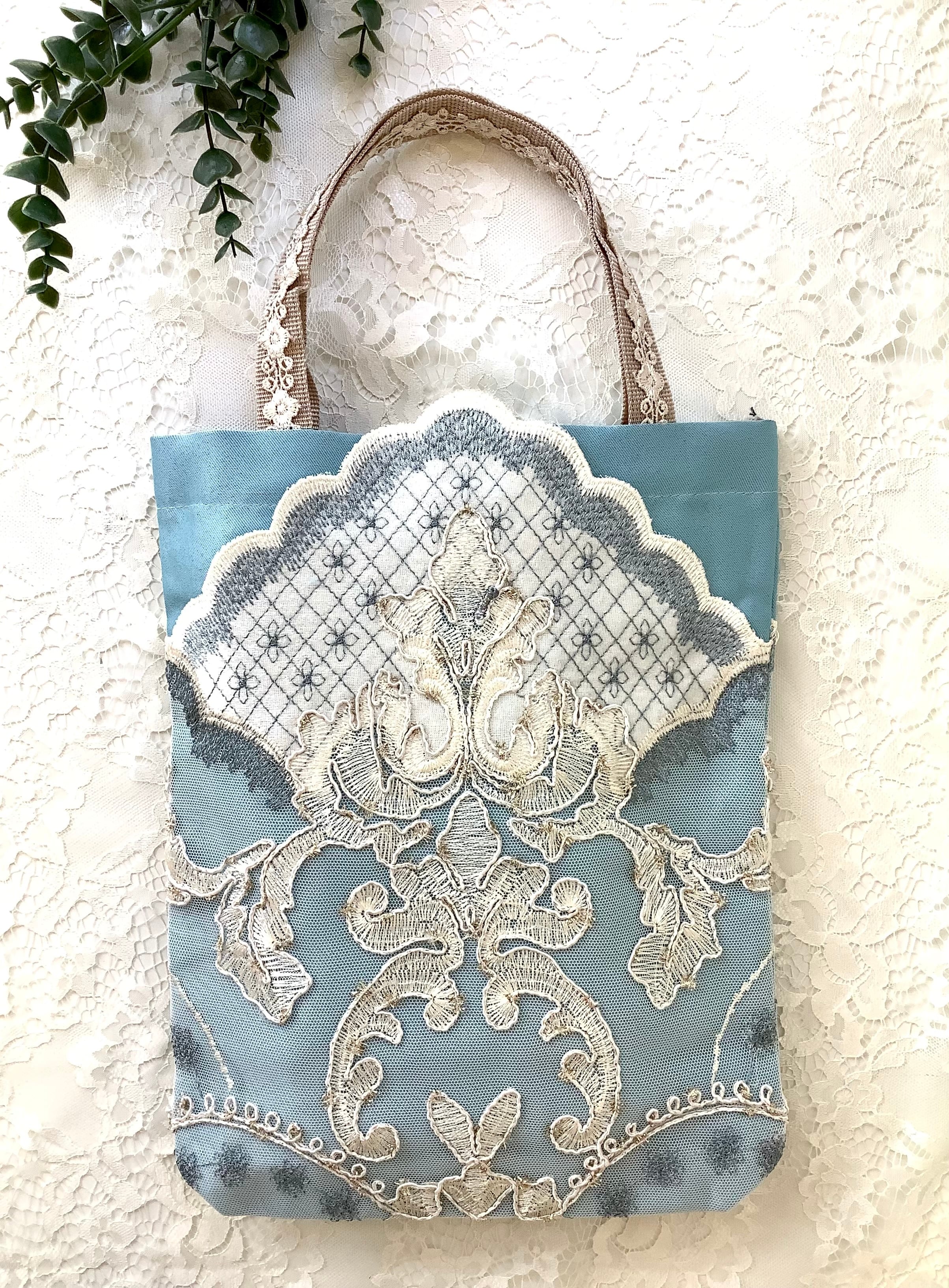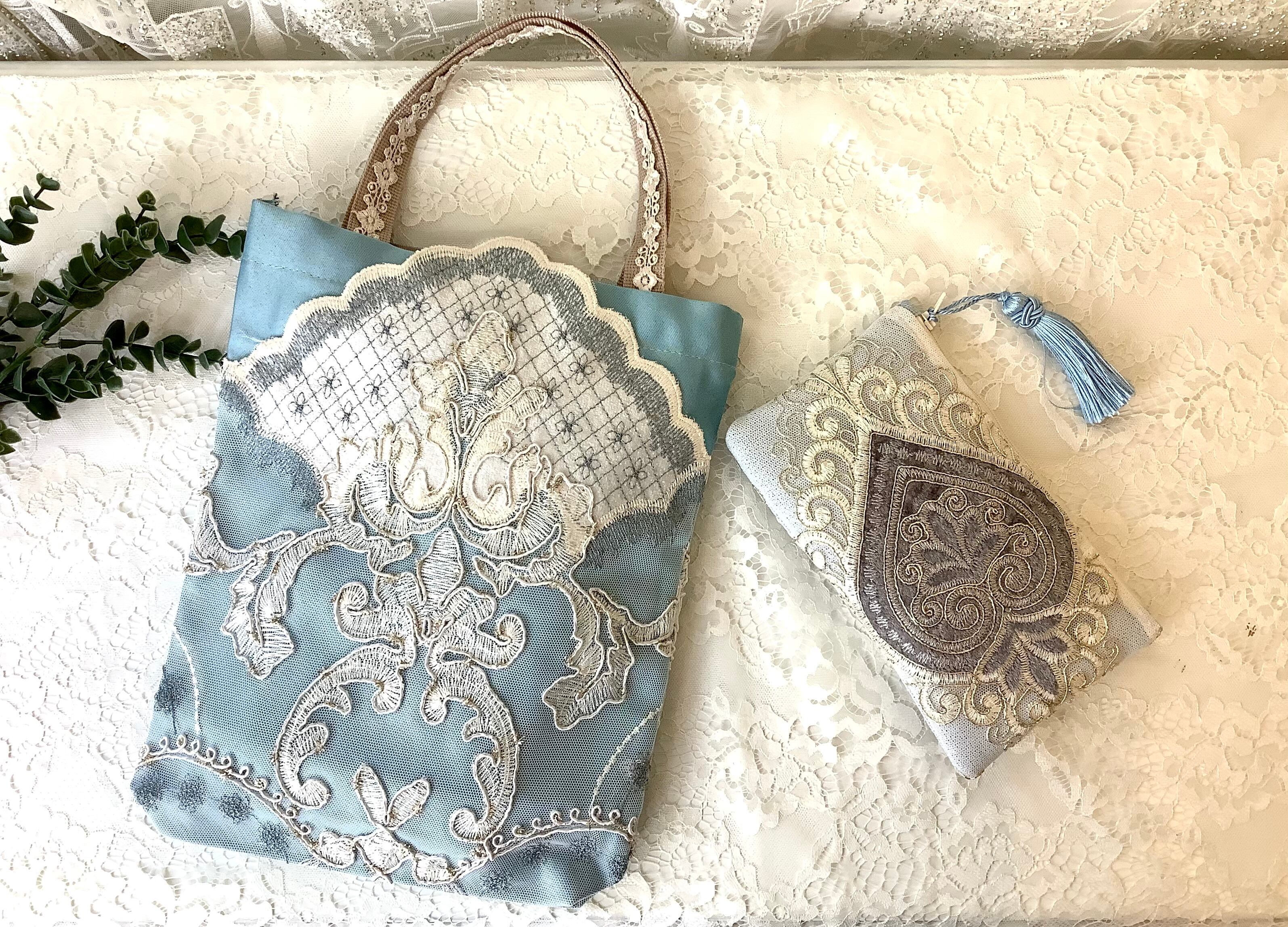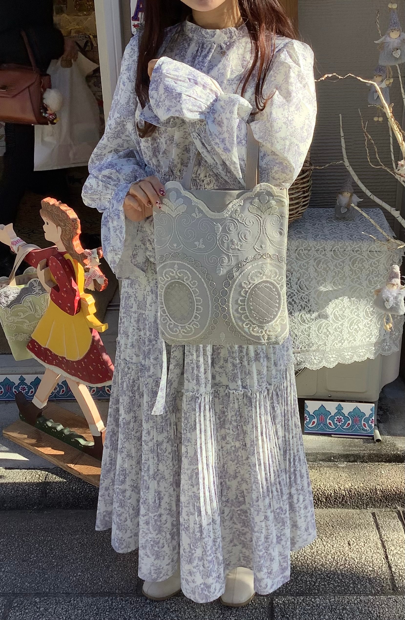 マチもあるので、かさばる羽織ものやショールなどもすっぽりおさまる。華やかなサブバッグにもおすすめです。