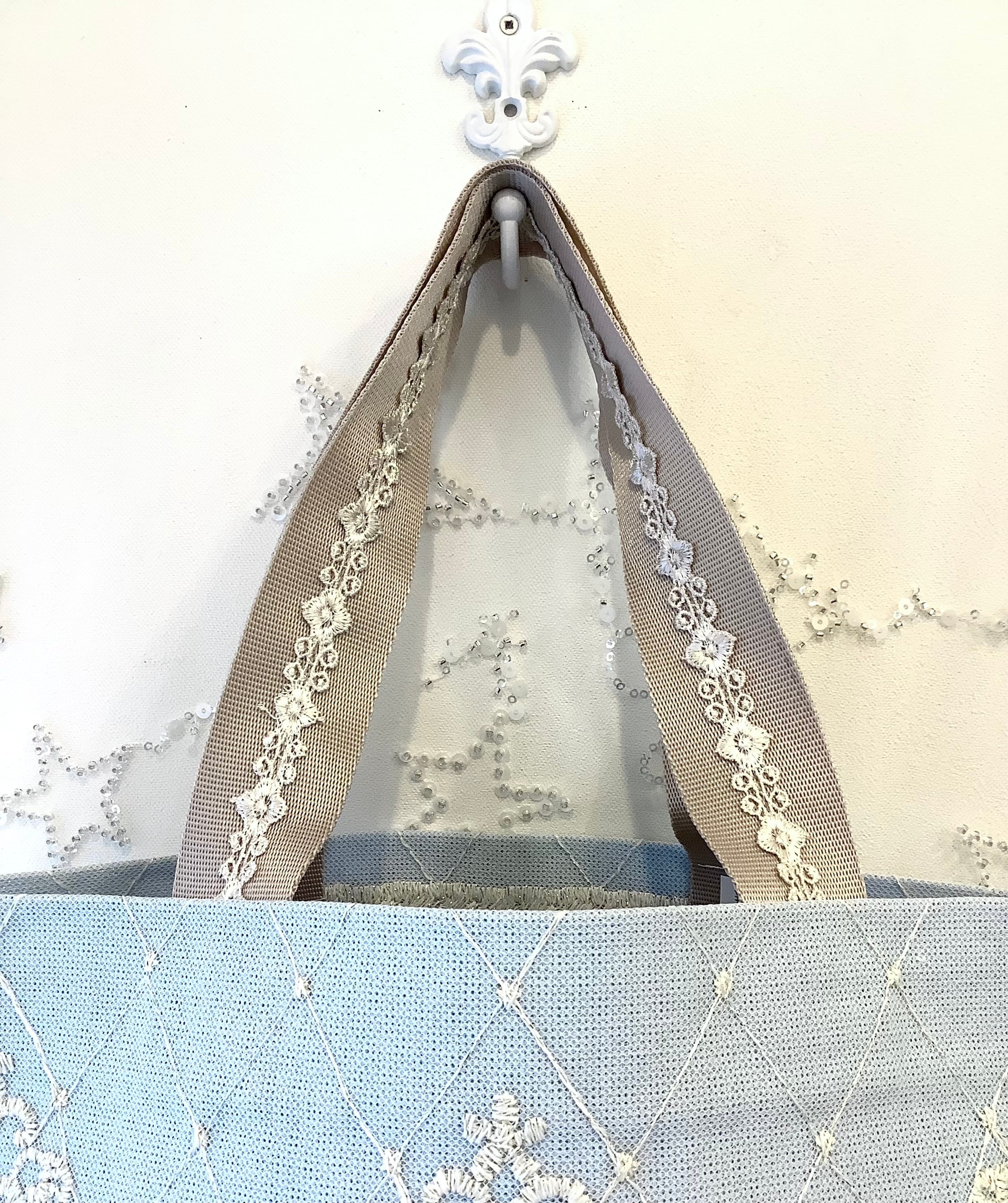 手作りの温かみが感じられるマーケットバッグ、シャーベットカラーのご紹介です。トルコのカーテンレースを使用しており、一つ一つ手作業で作られたアップサイクル商品です。お買い物や旅行など荷物が多い方にもぴったりの大きなバッグで、裏地もしっかりついています。内側にはかわいらしいレースポケットも付いていて、小物の収納も便利です。持ち手は長めに設計されており、肩にもかけられます。持ち手にもレースがあしらわれているので、ファッションアイテムとしてもおしゃれに活躍します。ぜひお気に入りのカーテンレースマーケットバッグを手に入れて、おしゃれなスタイリングを楽しんでみてください。