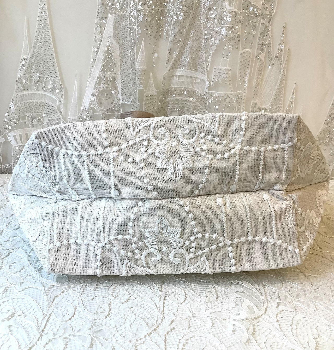 手作りの温かみが感じられるマーケットバッグ、シャーベットカラーのご紹介です。トルコのカーテンレースを使用しており、一つ一つ手作業で作られたアップサイクル商品です。お買い物や旅行など荷物が多い方にもぴったりの大きなバッグで、裏地もしっかりついています。内側にはかわいらしいレースポケットも付いていて、小物の収納も便利です。持ち手は長めに設計されており、肩にもかけられます。持ち手にもレースがあしらわれているので、ファッションアイテムとしてもおしゃれに活躍します。ぜひお気に入りのカーテンレースマーケットバッグを手に入れて、おしゃれなスタイリングを楽しんでみてください。