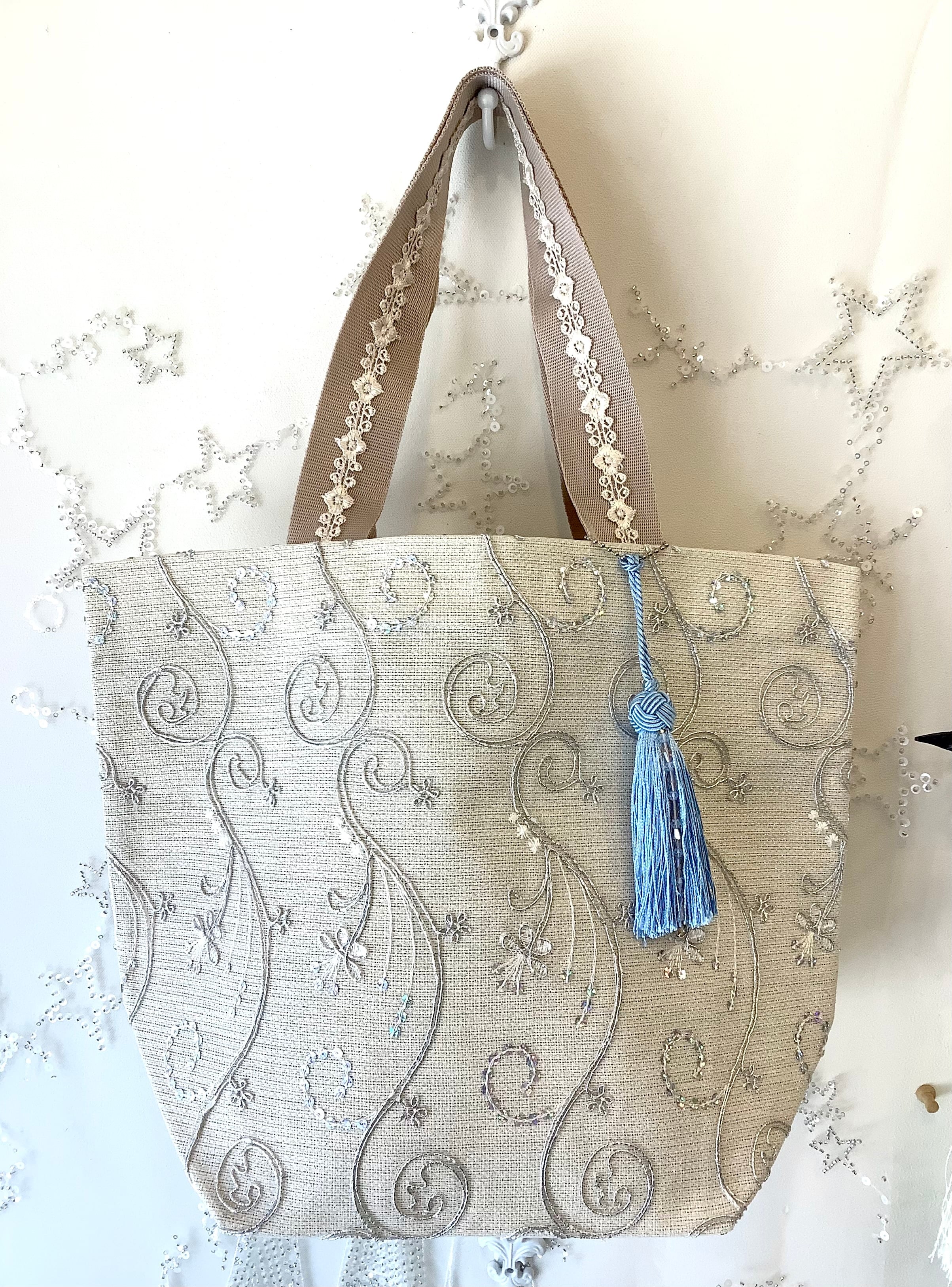 手作りの温かみが感じられるマーケットバッグ、シャーベットカラーのご紹介です。トルコのカーテンレースを使用しており、一つ一つ手作業で作られたアップサイクル商品です。お買い物や旅行など荷物が多い方にもぴったりの大きなバッグで、裏地もしっかりついています。内側にはかわいらしいレースポケットも付いていて、小物の収納も便利です。持ち手は長めに設計されており、肩にもかけられます。持ち手にもレースがあしらわれているので、ファッションアイテムとしてもおしゃれに活躍します。ぜひお気に入りのカーテンレースマーケットバッグを手に入れて、おしゃれなスタイリングを楽しんでみてください。