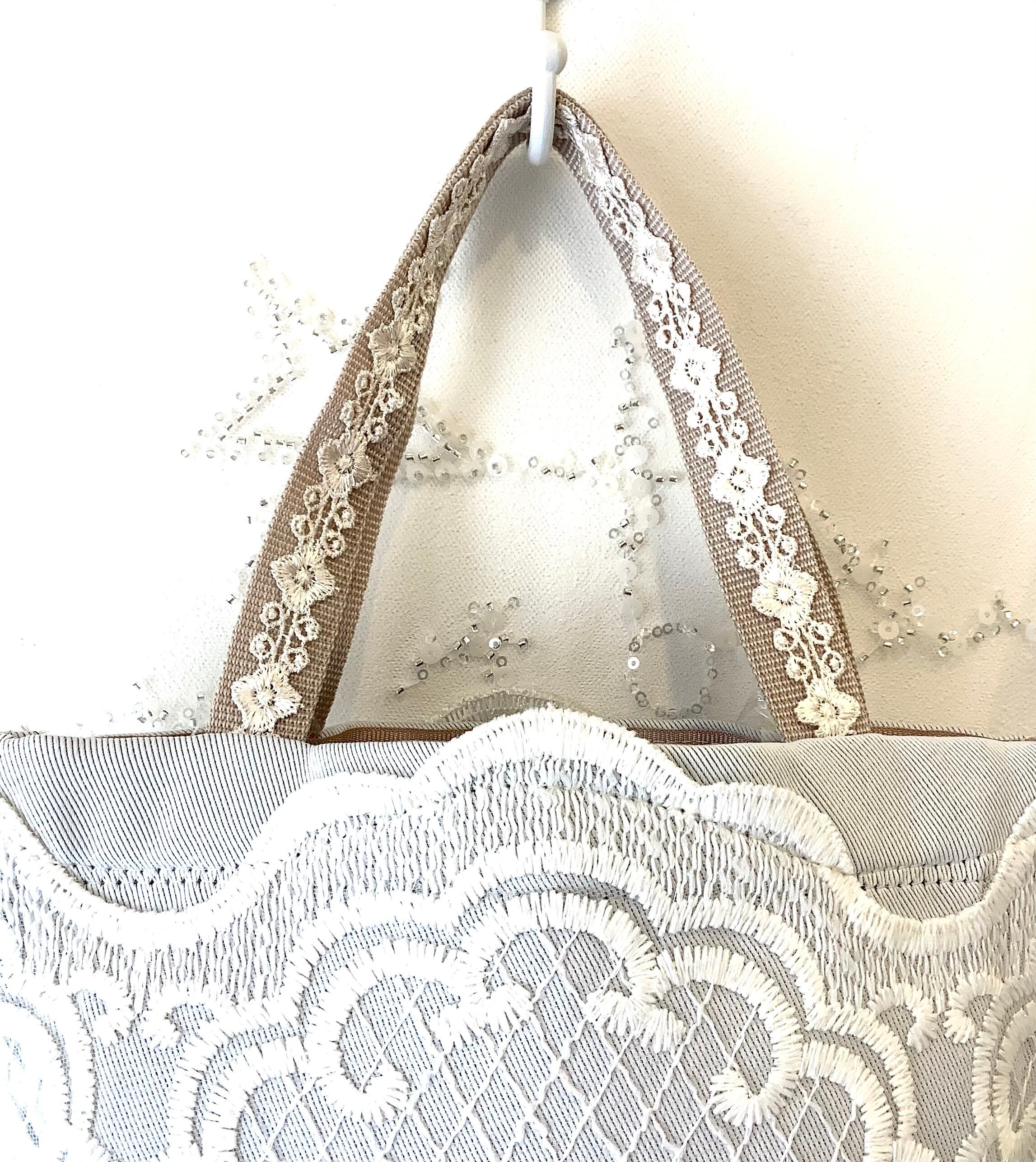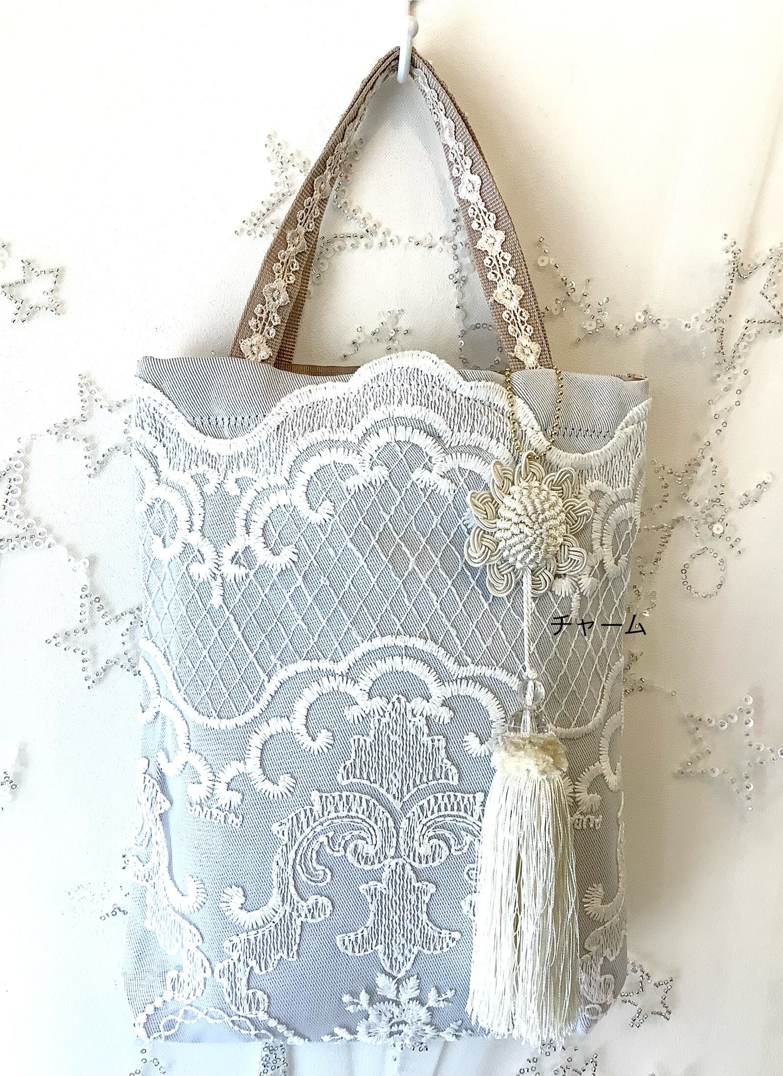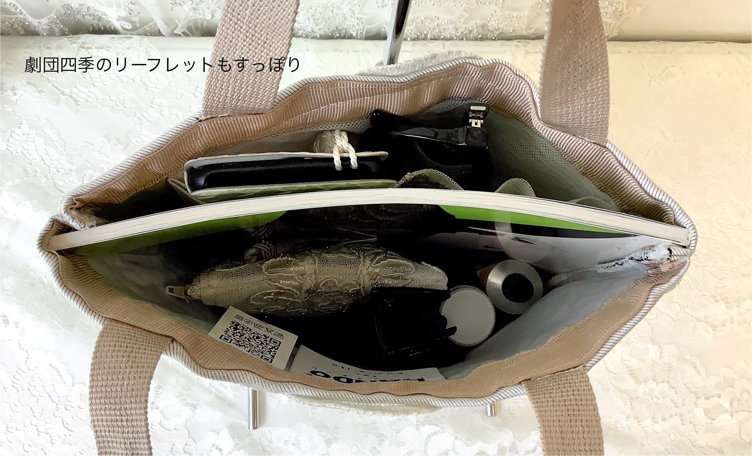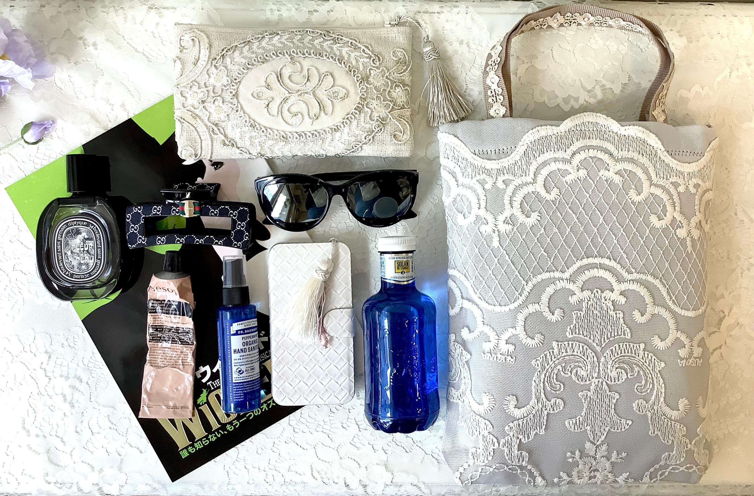 マチもあるので、かさばる羽織ものやショールなどもすっぽりおさまる。華やかなサブバッグにもおすすめです。