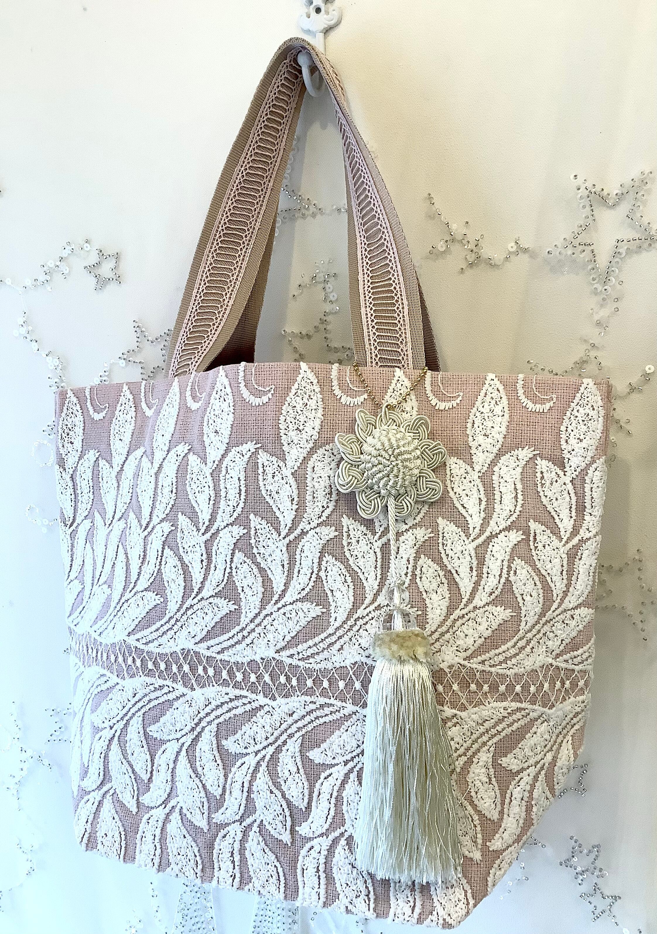 手作りの温かみが感じられるマーケットバッグのご紹介です。トルコのカーテンレースを使用しており、一つ一つ手作業で作られたアップサイクル商品です。お買い物や旅行など荷物が多い方にもぴったりの大きなバッグで、裏地もしっかりついています。内側にはかわいらしいレースポケットも付いていて、小物の収納も便利です。持ち手は長めに設計されており、肩にもかけられます。持ち手にもレースがあしらわれているので、ファッションアイテムとしてもおしゃれに活躍します。ぜひお気に入りのカーテンレースマーケットバッグを手に入れて、おしゃれなスタイリングを楽しんでみてください。