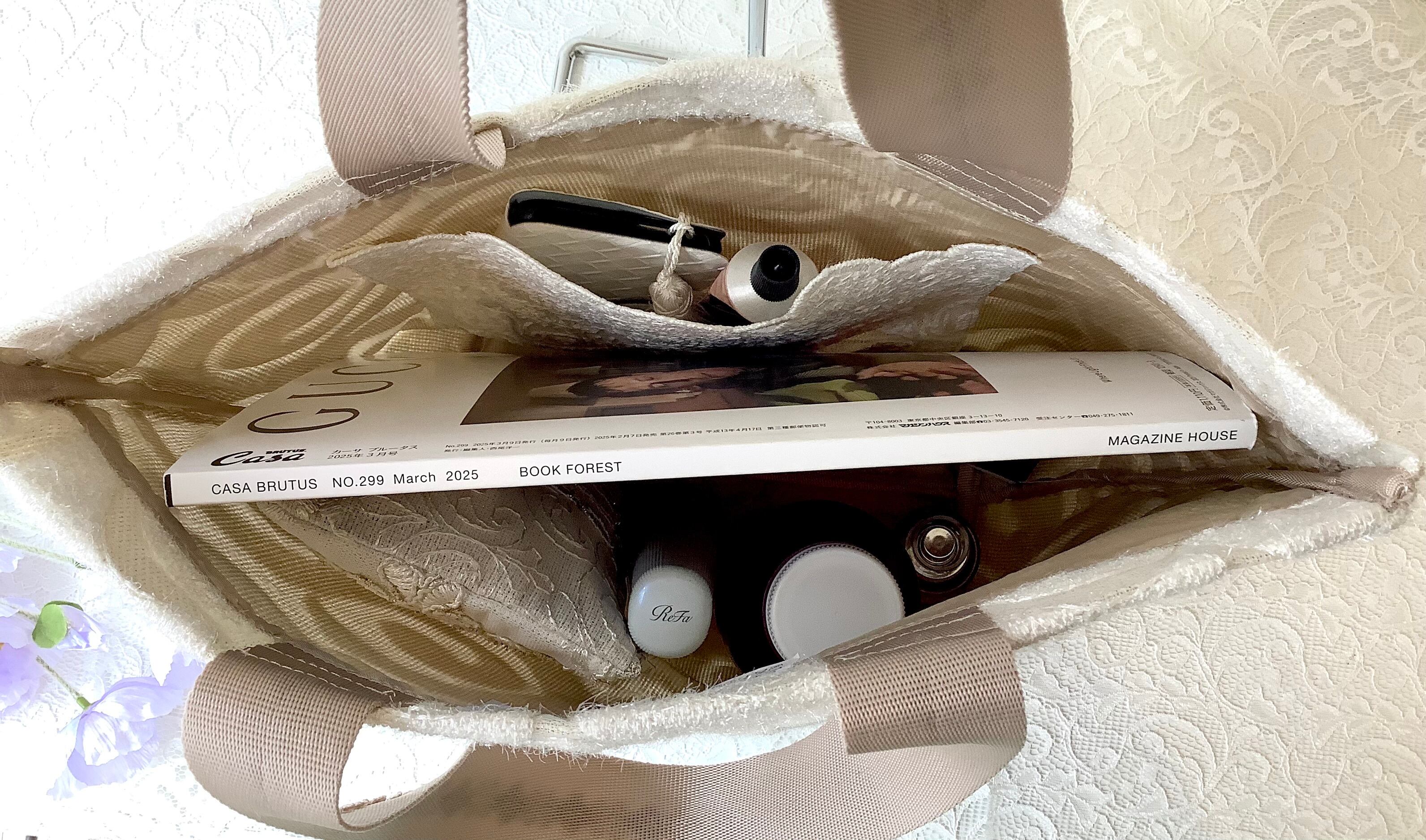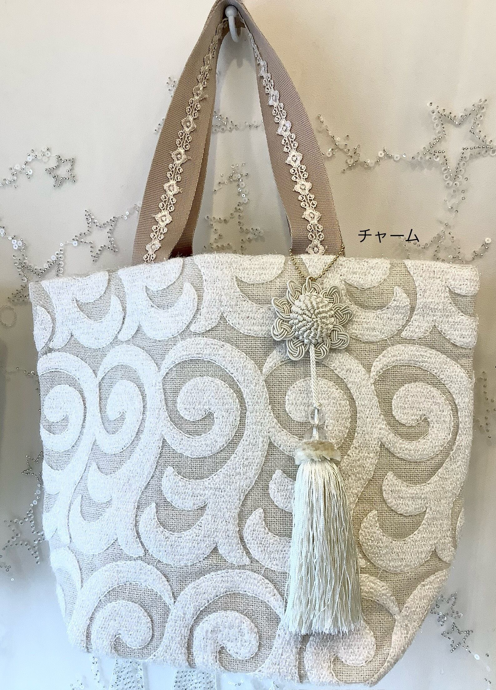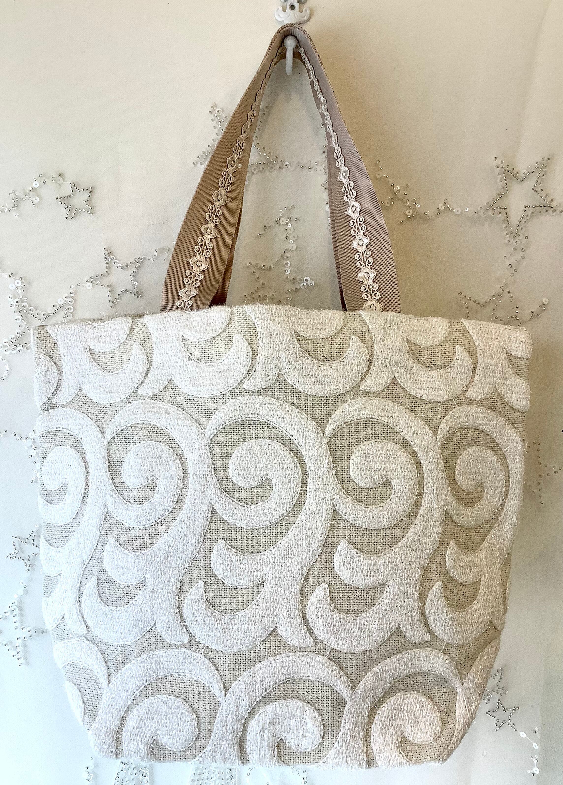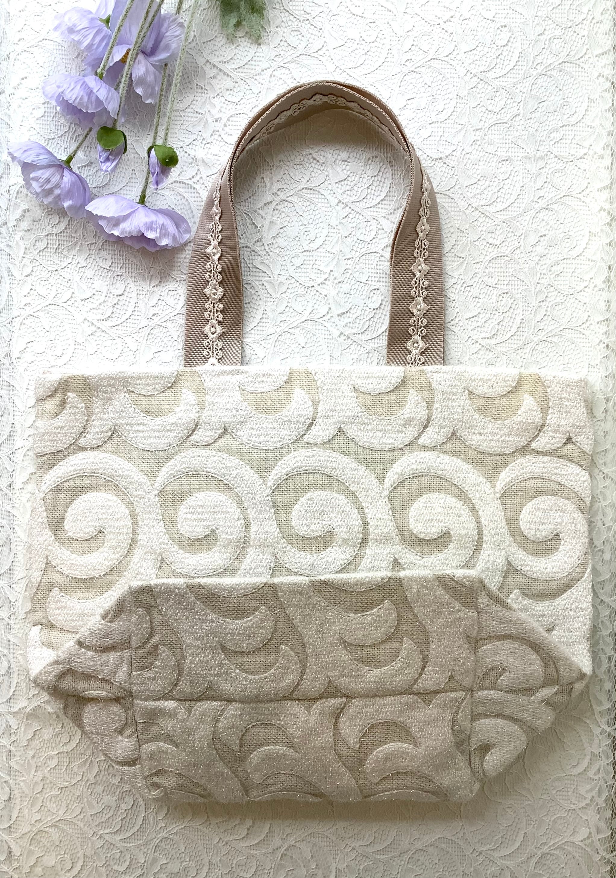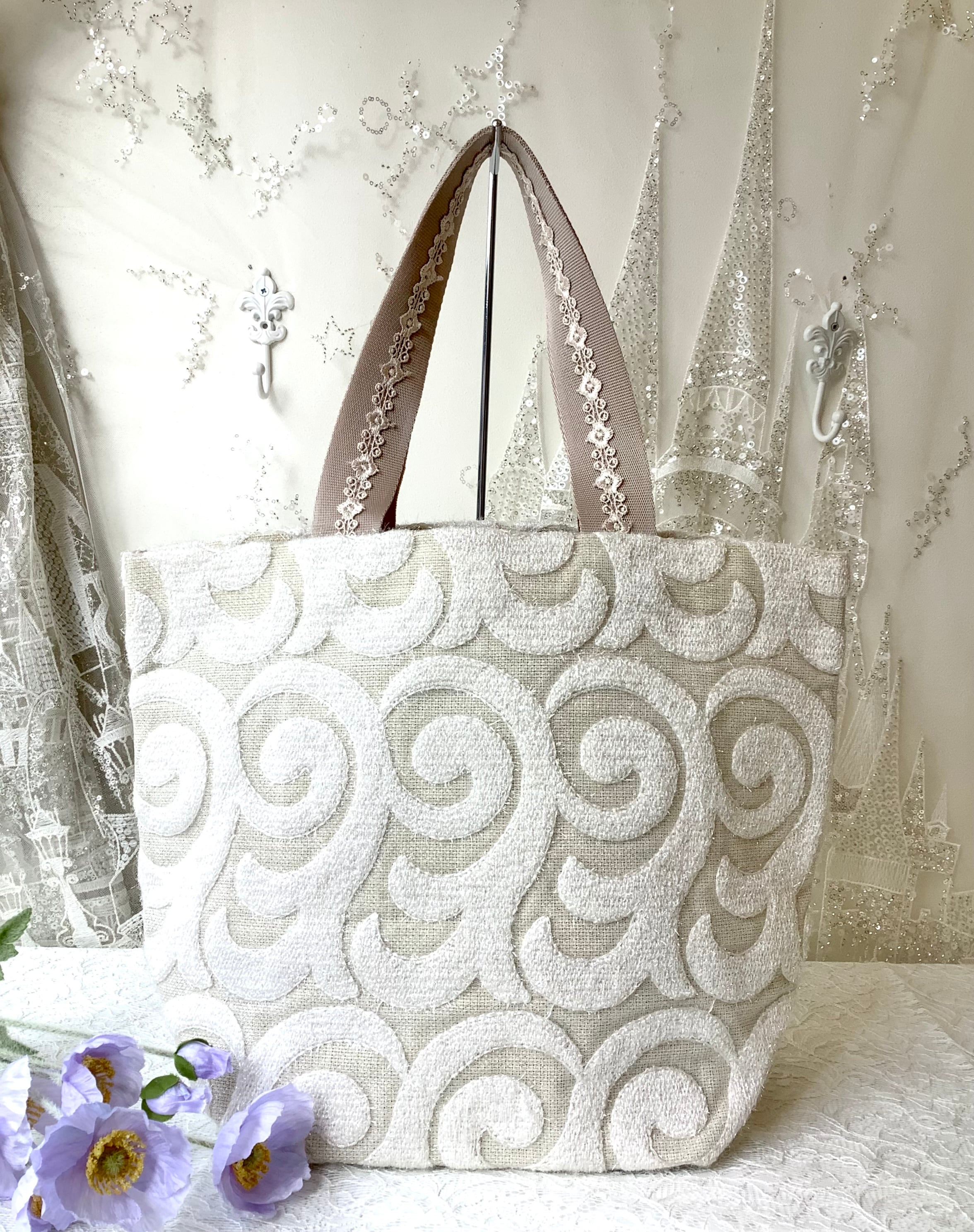 手作りの温かみが感じられるマーケットバッグのご紹介です。トルコのカーテンレースを使用しており、一つ一つ手作業で作られたアップサイクル商品です。お買い物や旅行など荷物が多い方にもぴったりの大きなバッグで、裏地もしっかりついています。内側にはかわいらしいレースポケットも付いていて、小物の収納も便利です。持ち手は長めに設計されており、肩にもかけられます。持ち手にもレースがあしらわれているので、ファッションアイテムとしてもおしゃれに活躍します。ぜひお気に入りのカーテンレースマーケットバッグを手に入れて、おしゃれなスタイリングを楽しんでみてください。