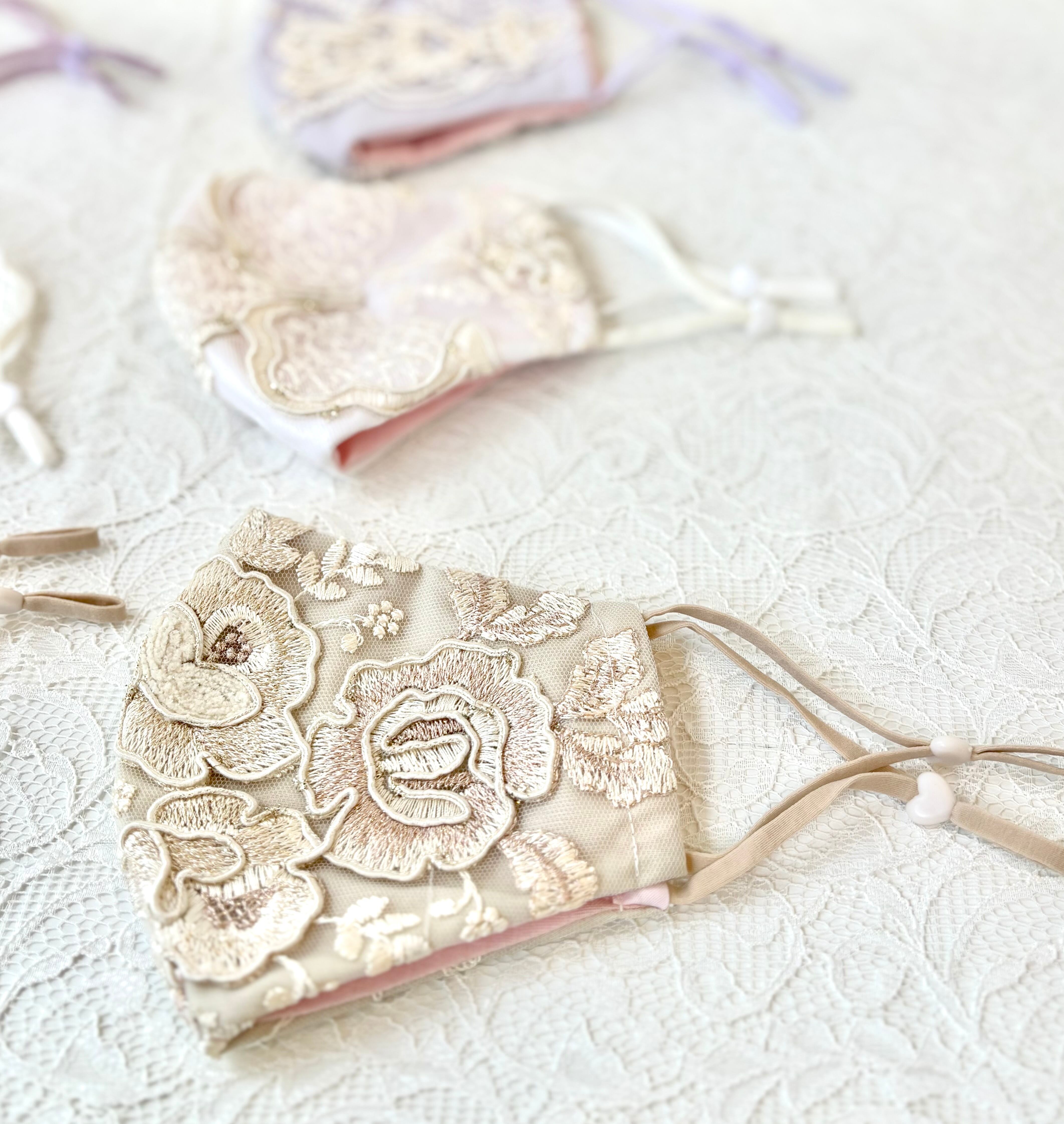 このマスクはトルコのカーテンレースを使用したアップサイクル商品で、環境にも配慮しています。