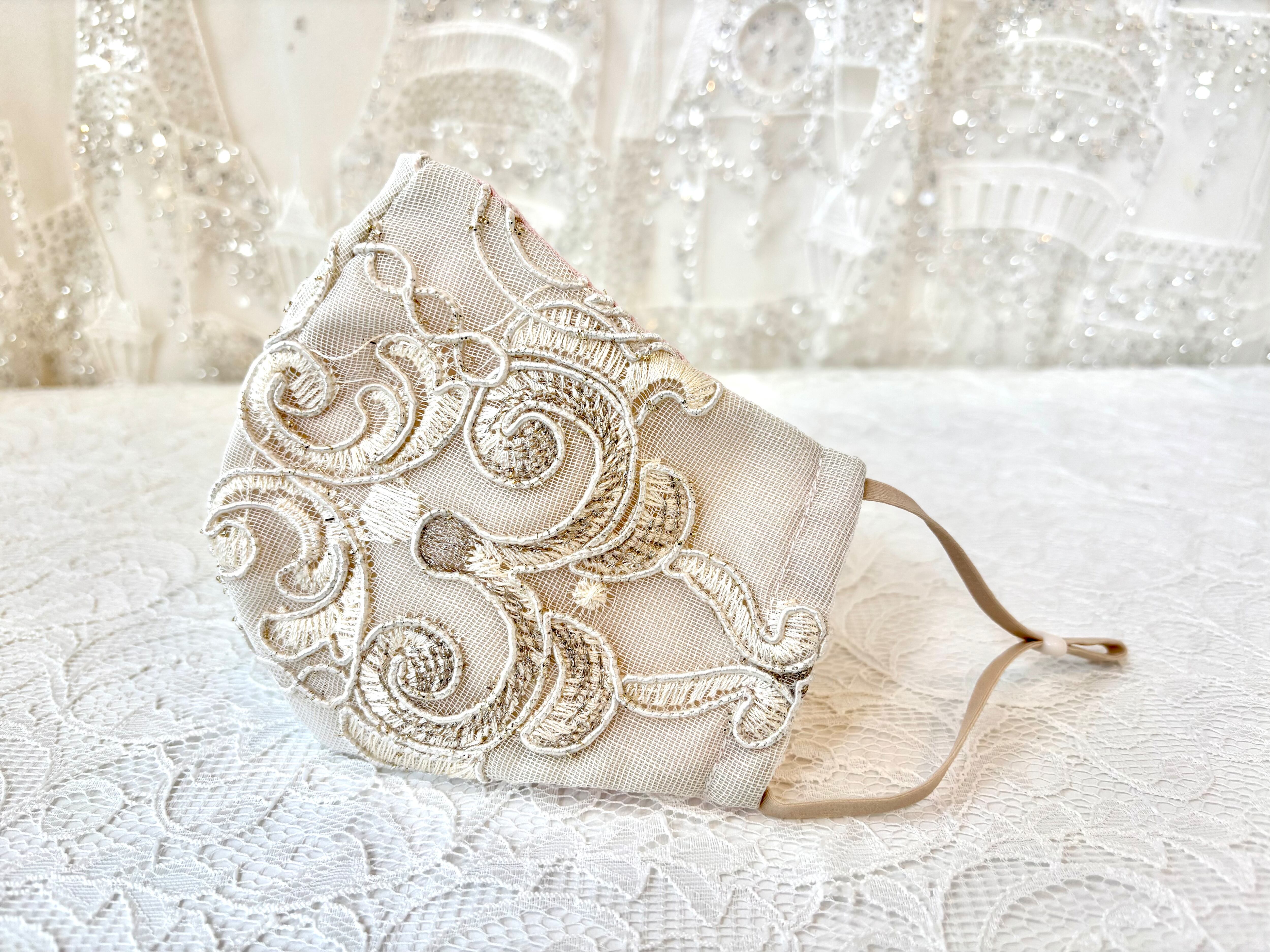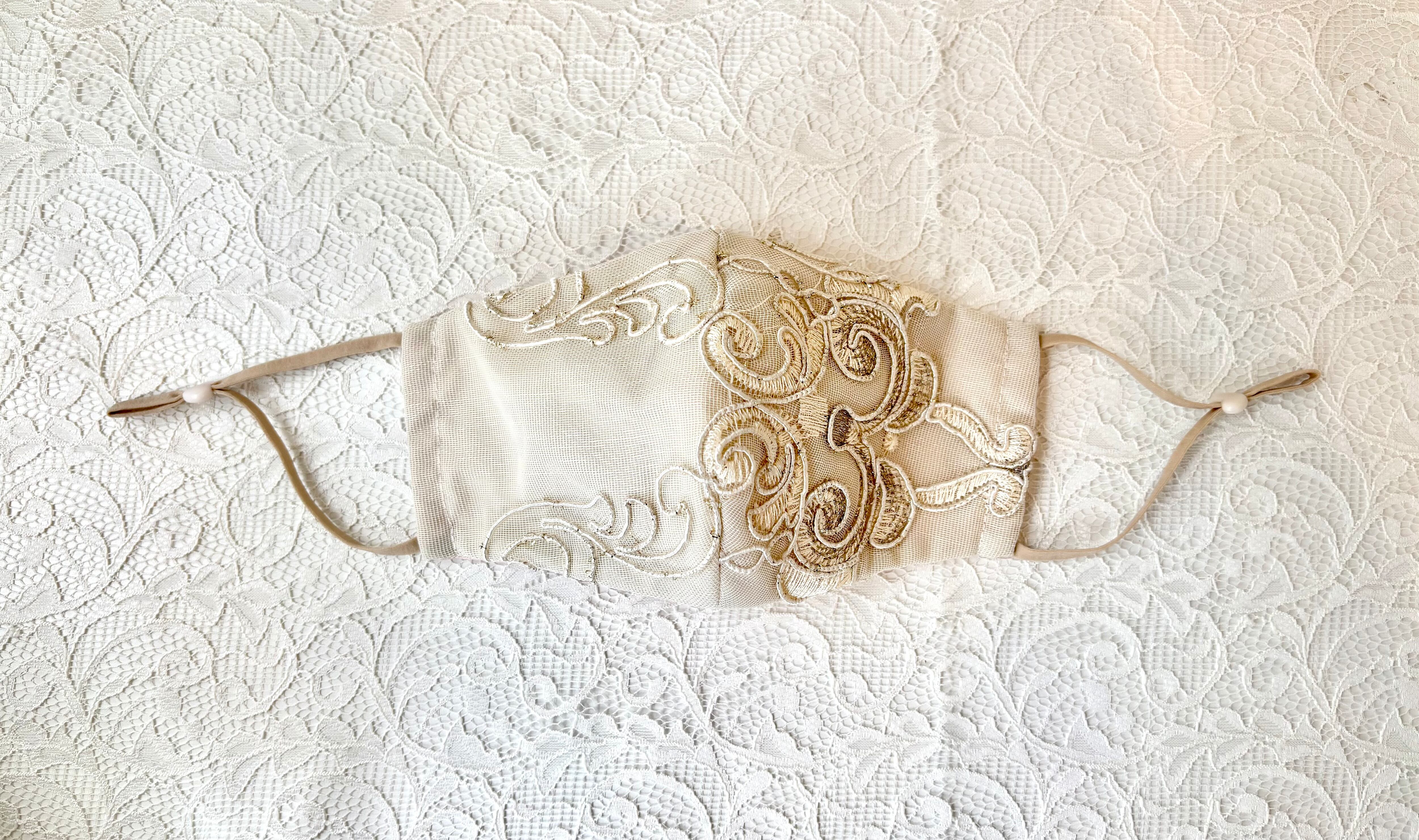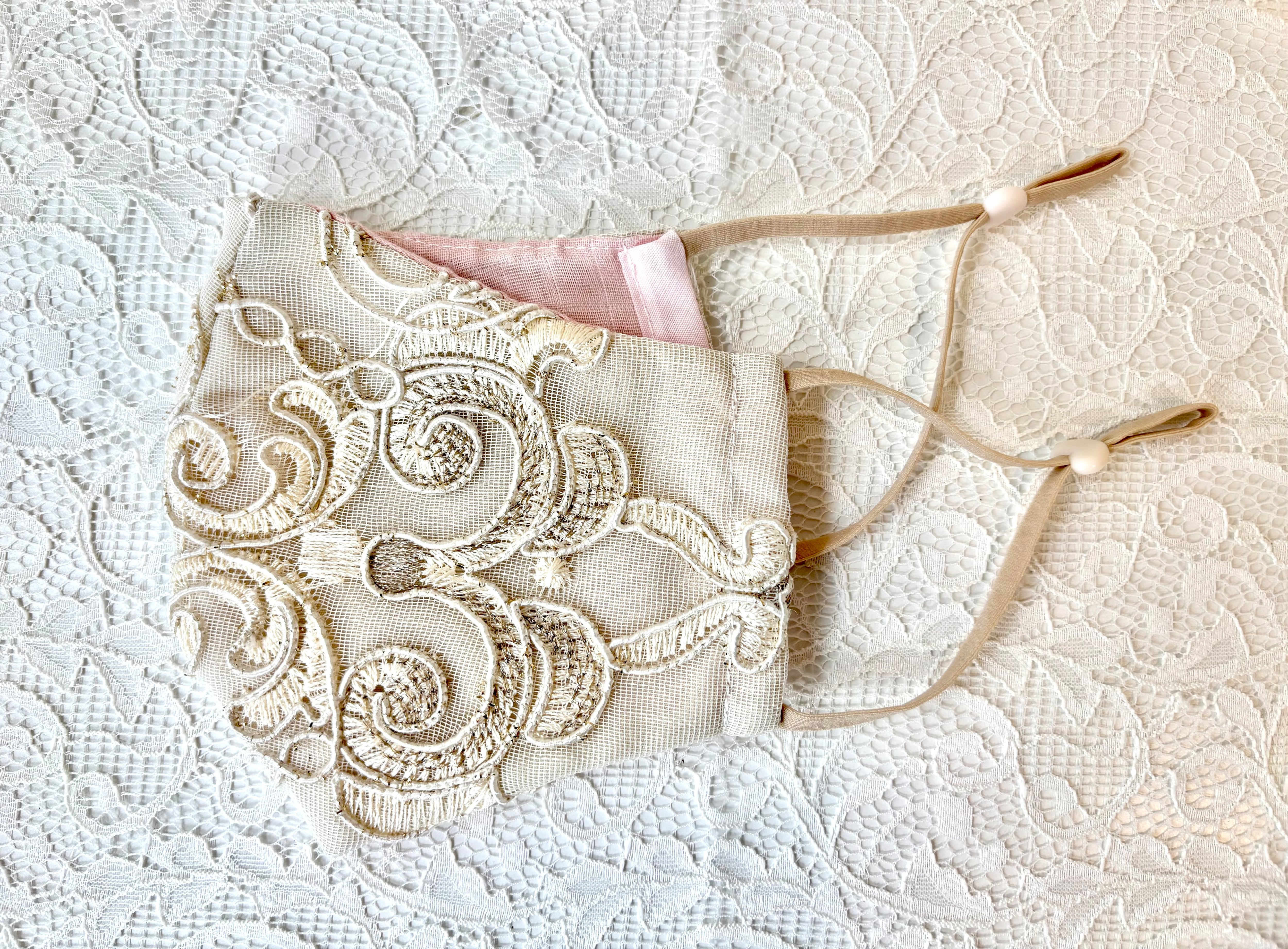 このマスクはトルコのカーテンレースを使用したアップサイクル商品で、環境にも配慮しています。