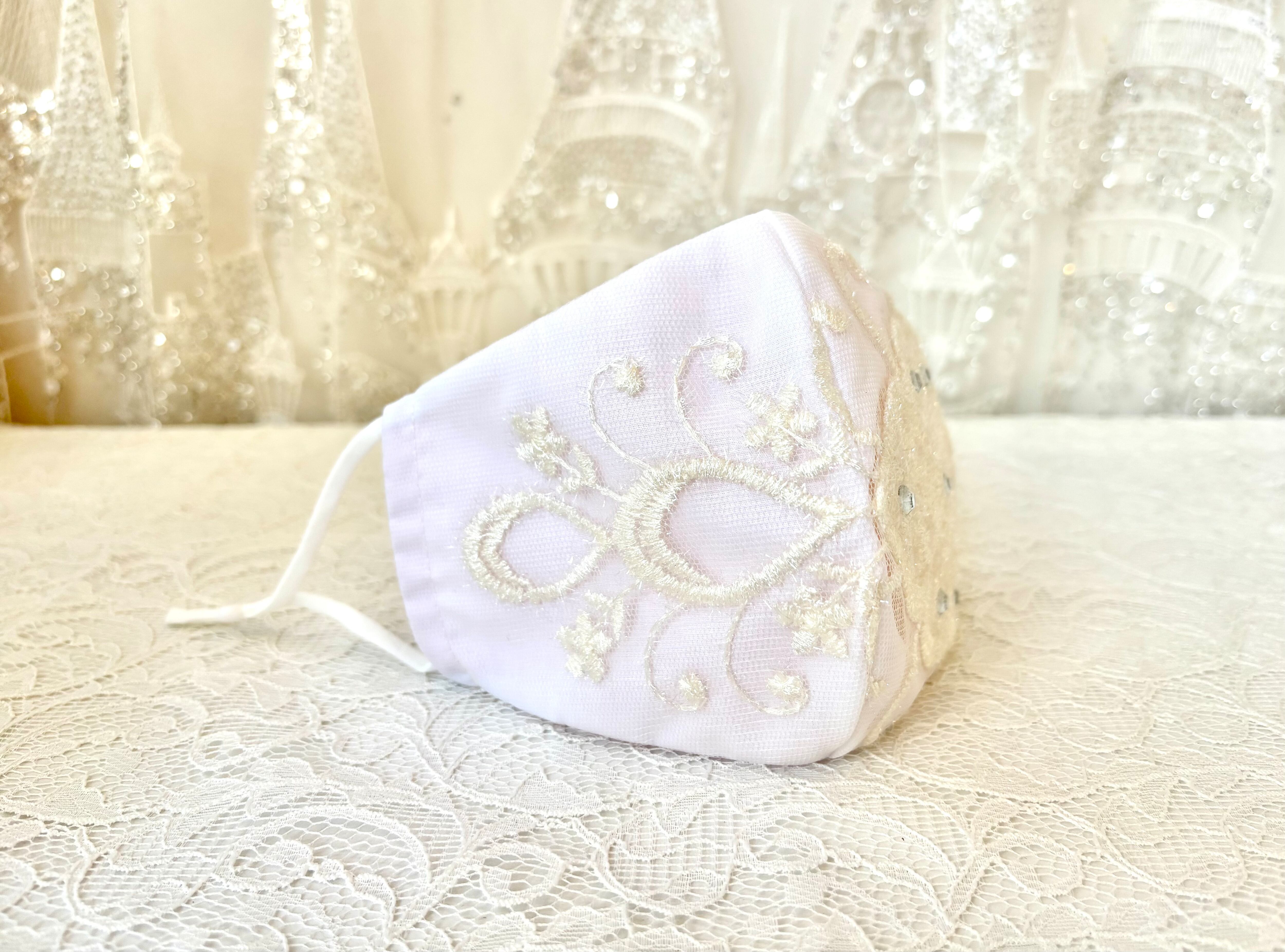 このマスクはトルコのカーテンレースを使用したアップサイクル商品で、環境にも配慮しています。