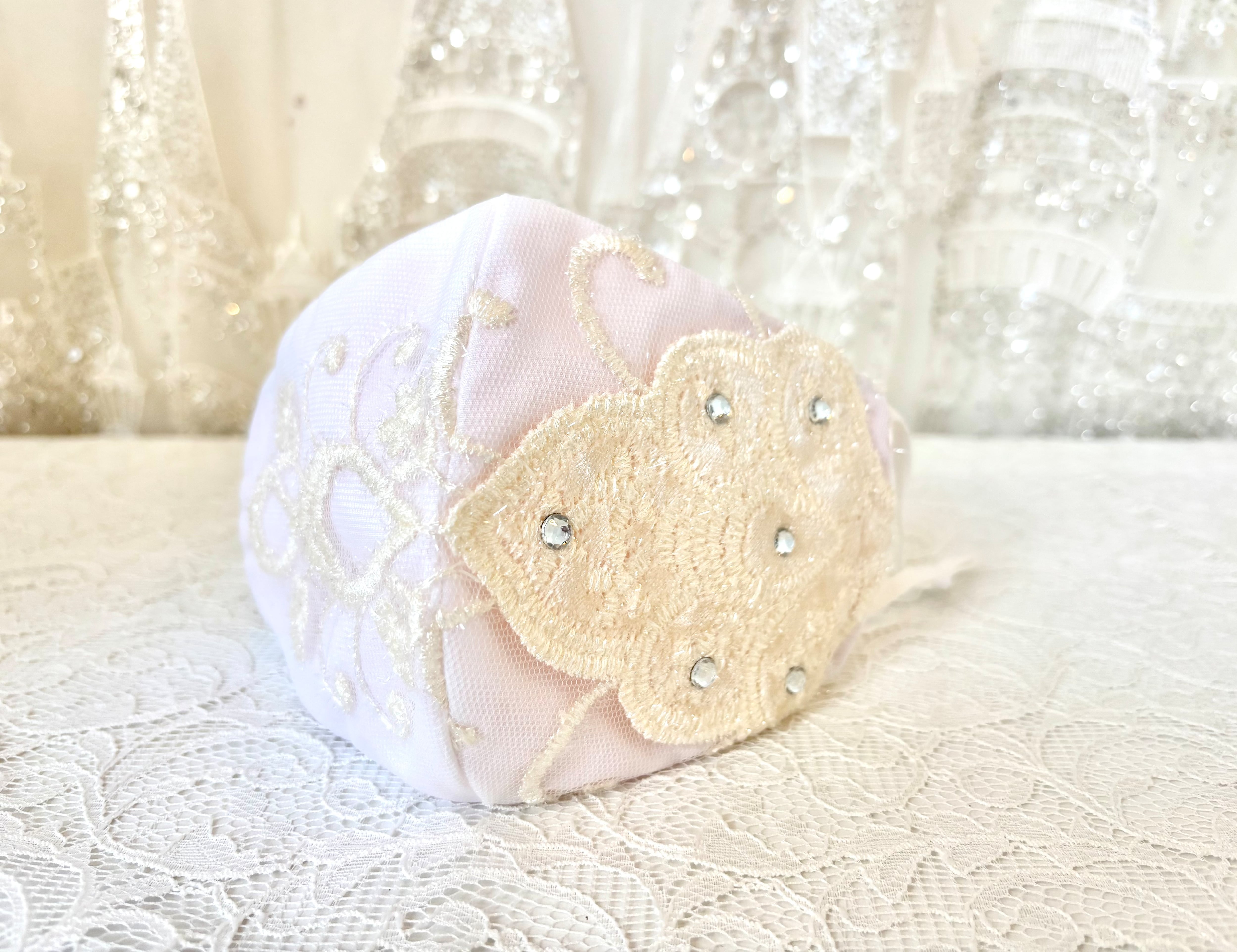 ガーゼにトルコの高級レースを重ねた、かわいらしいデザインのクレンゼマスクです。
