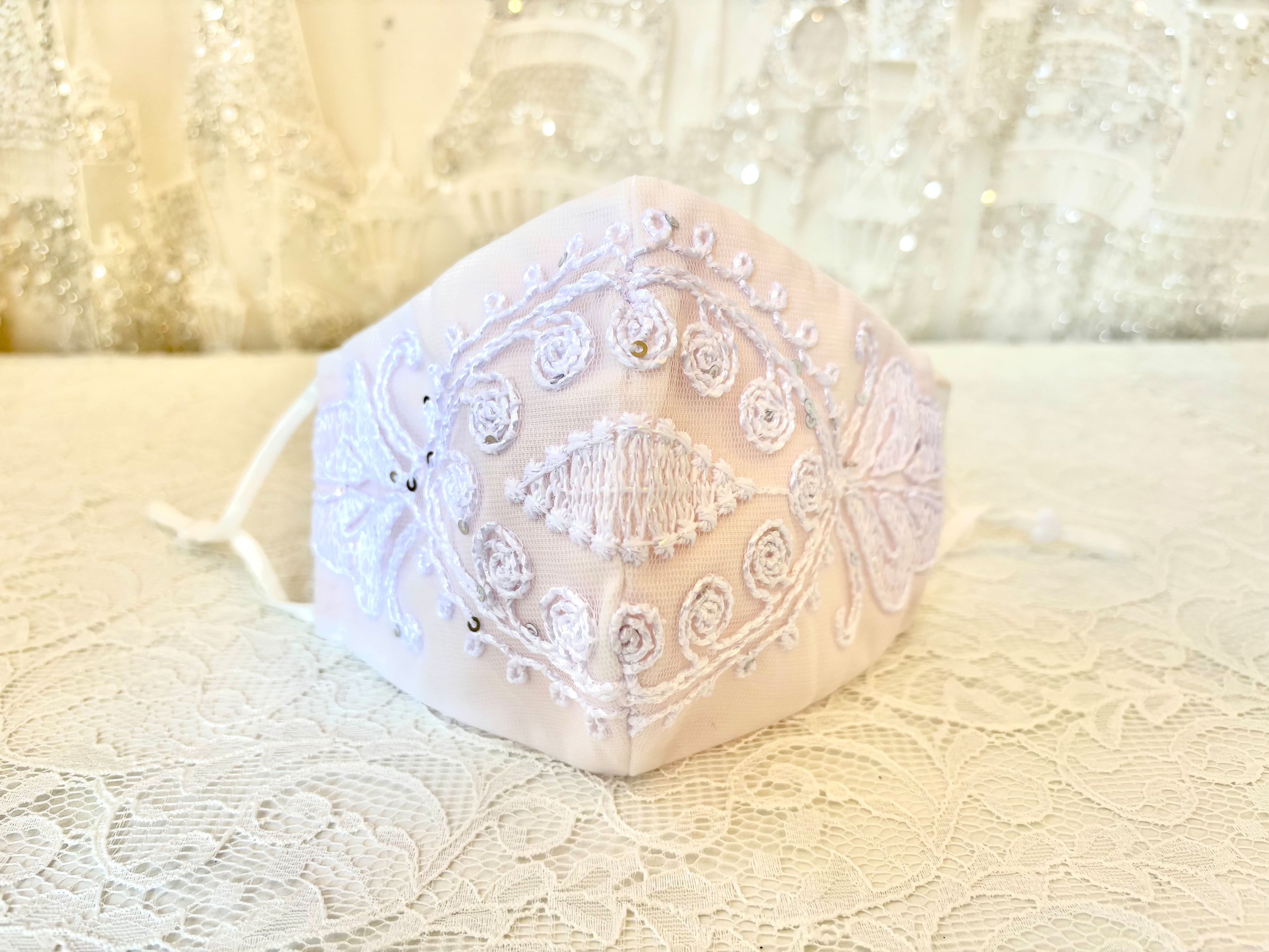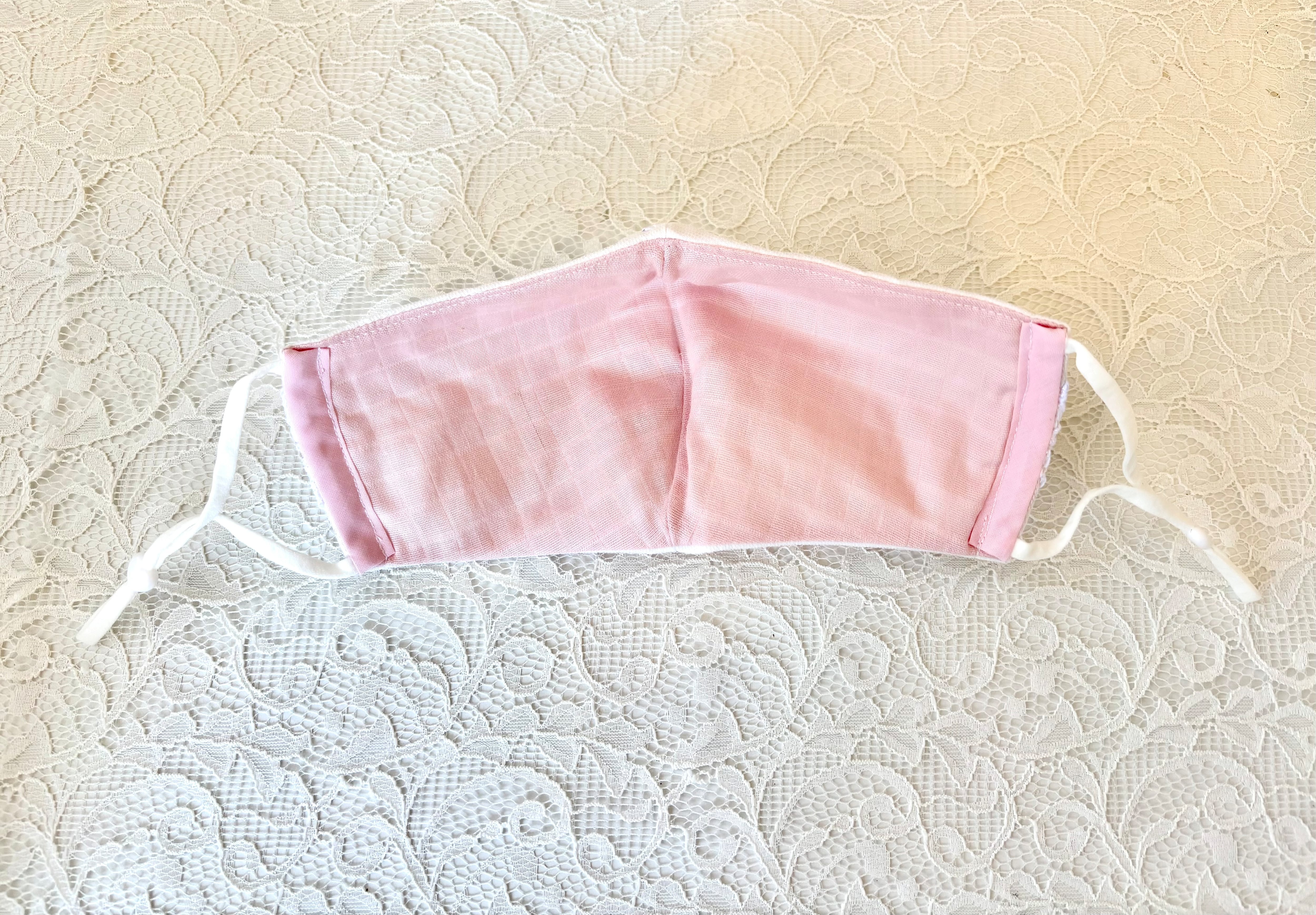 ガーゼにトルコの高級レースを重ねた、かわいらしいデザインのクレンゼマスクです。