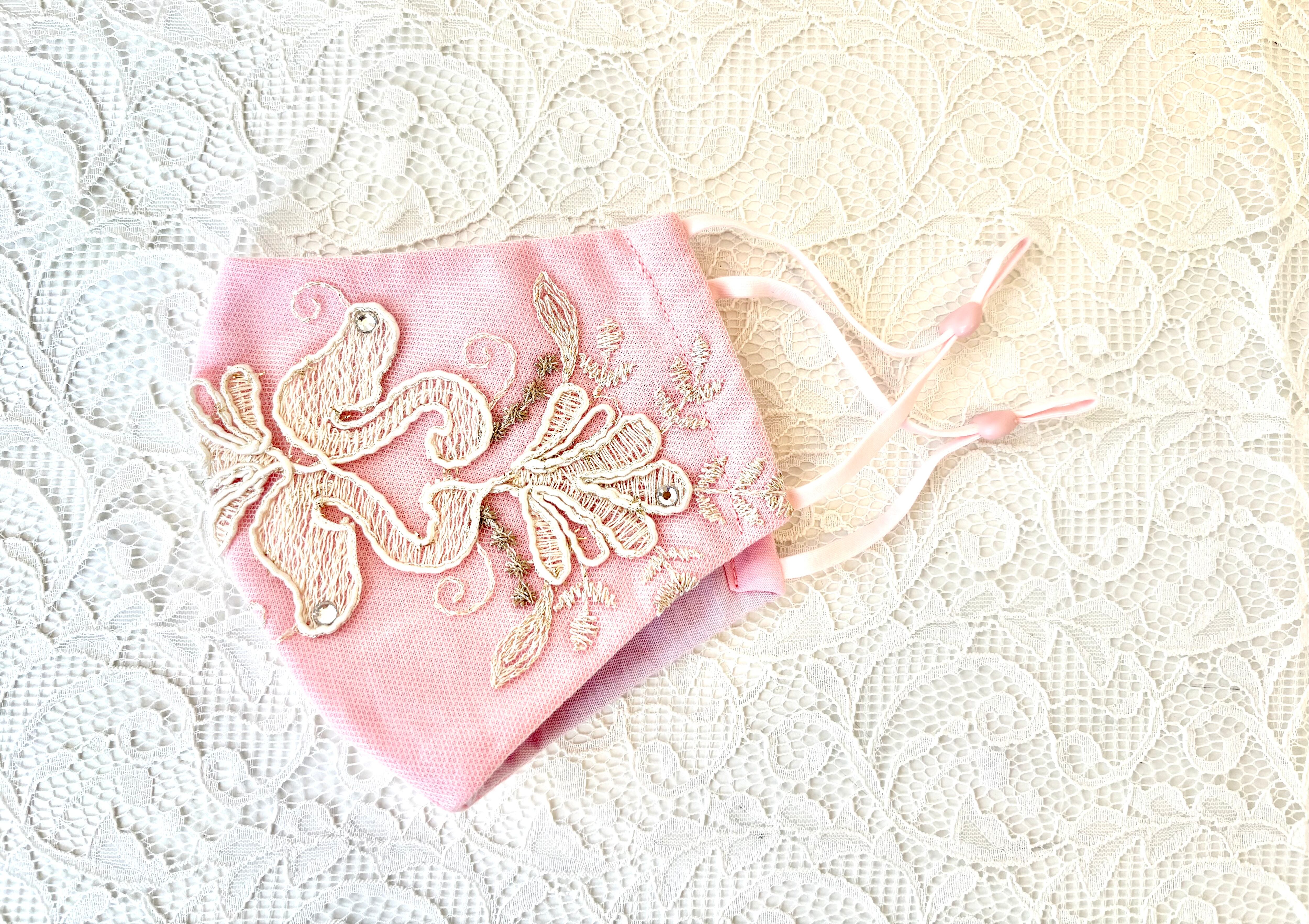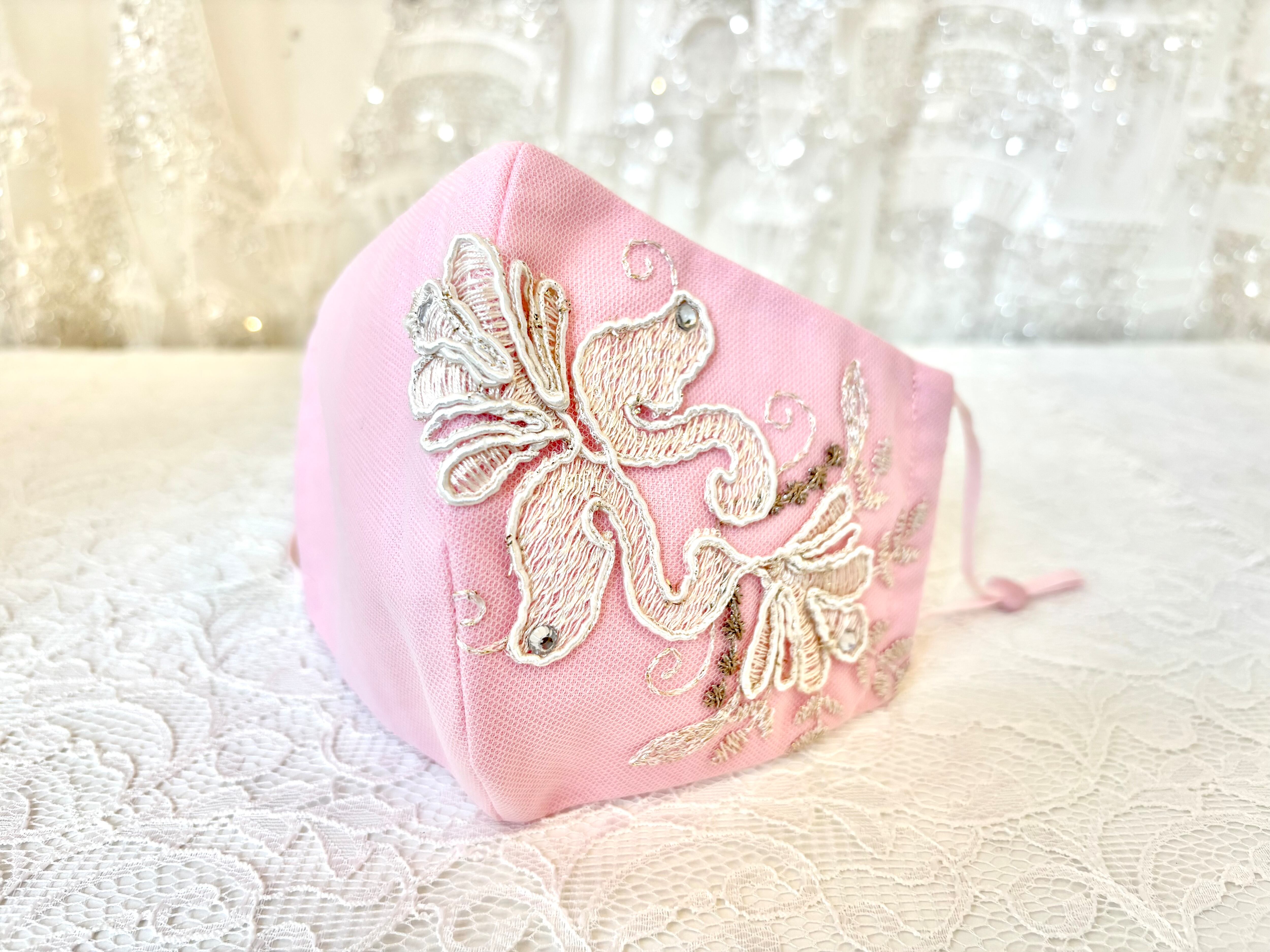 ガーゼにトルコの高級レースを重ねた、かわいらしいデザインのクレンゼマスクです。