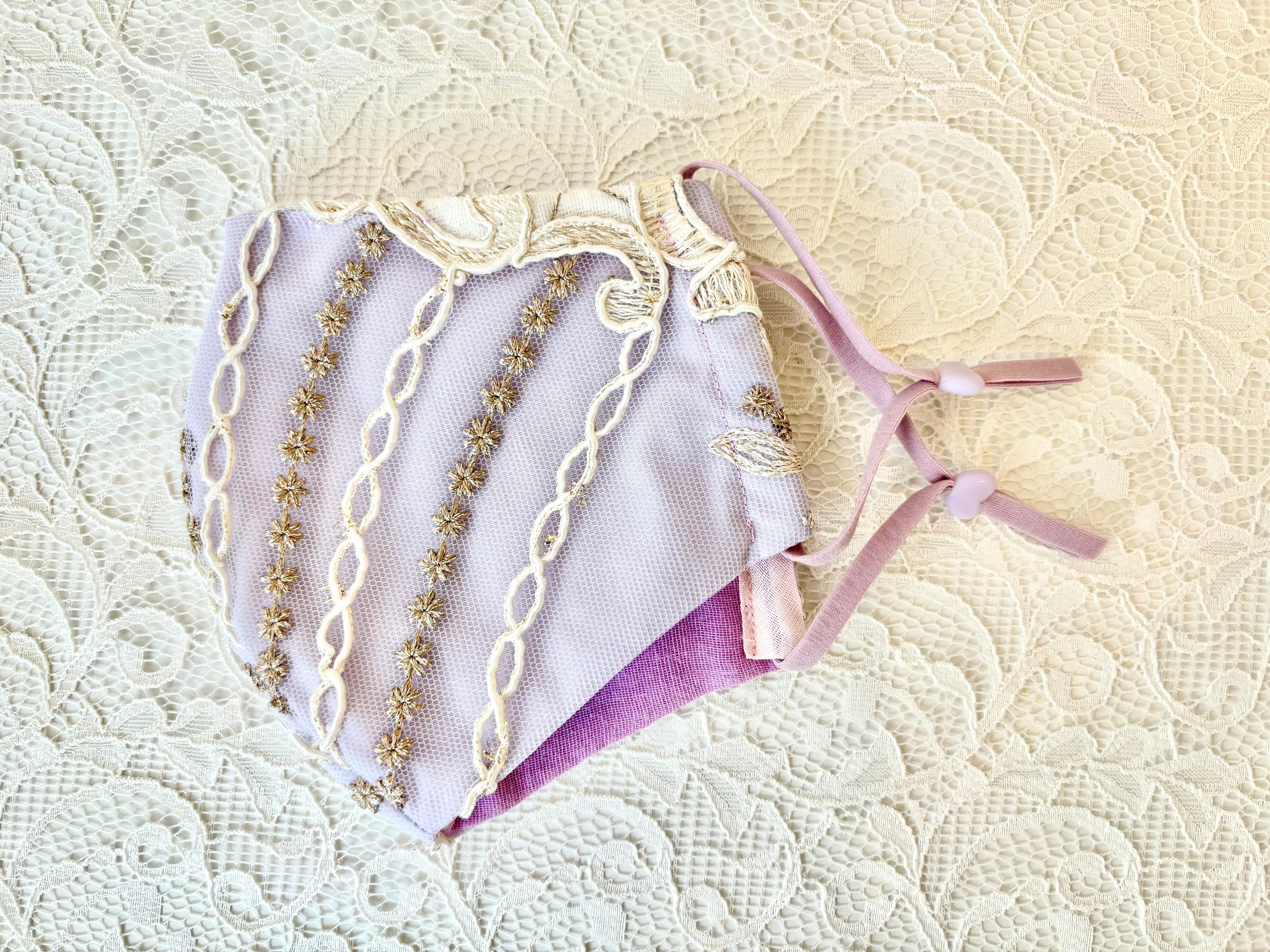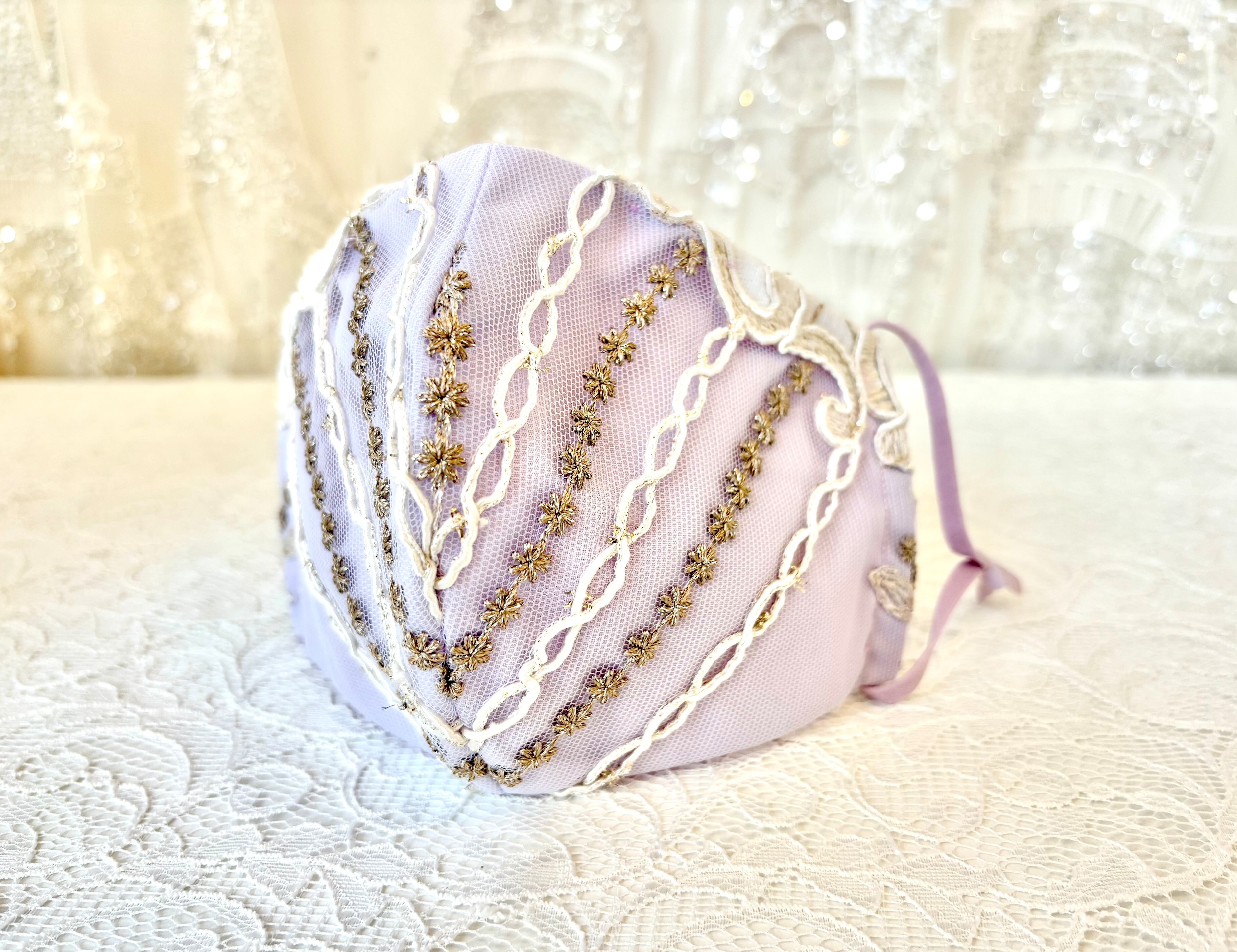 ガーゼにトルコの高級レースを重ねた、かわいらしいデザインのクレンゼマスクです。