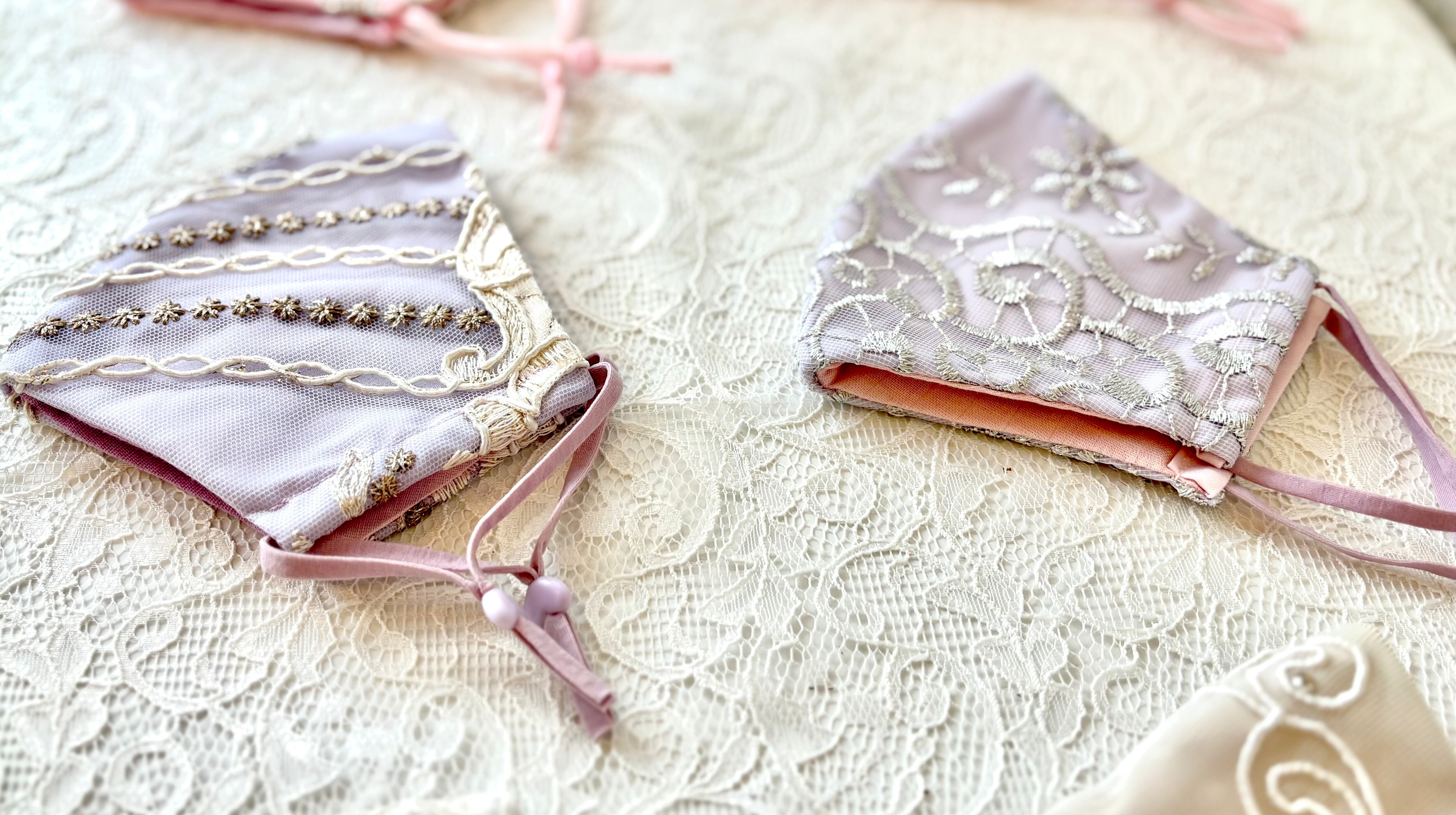 このマスクはトルコのカーテンレースを使用したアップサイクル商品で、環境にも配慮しています。
