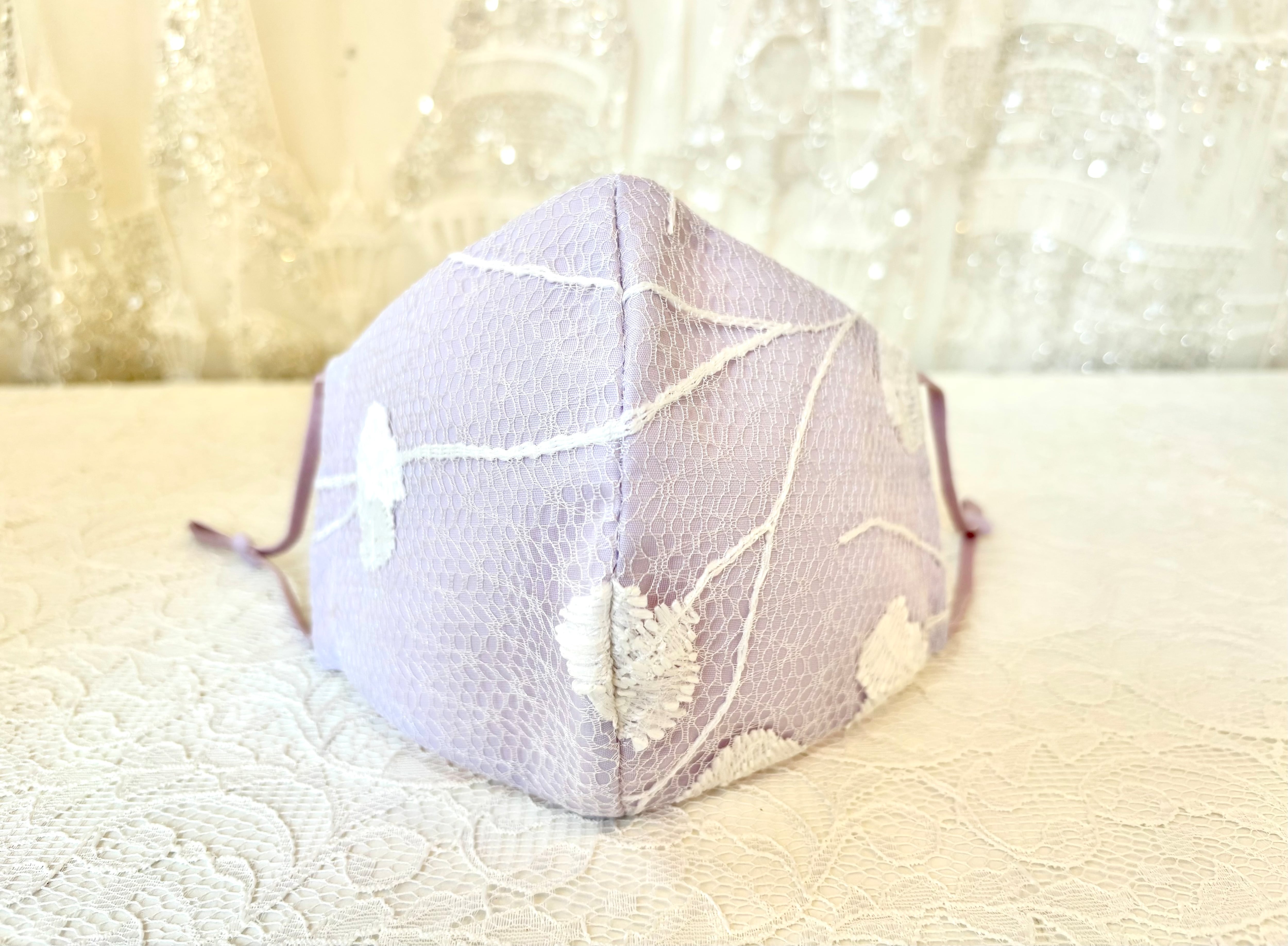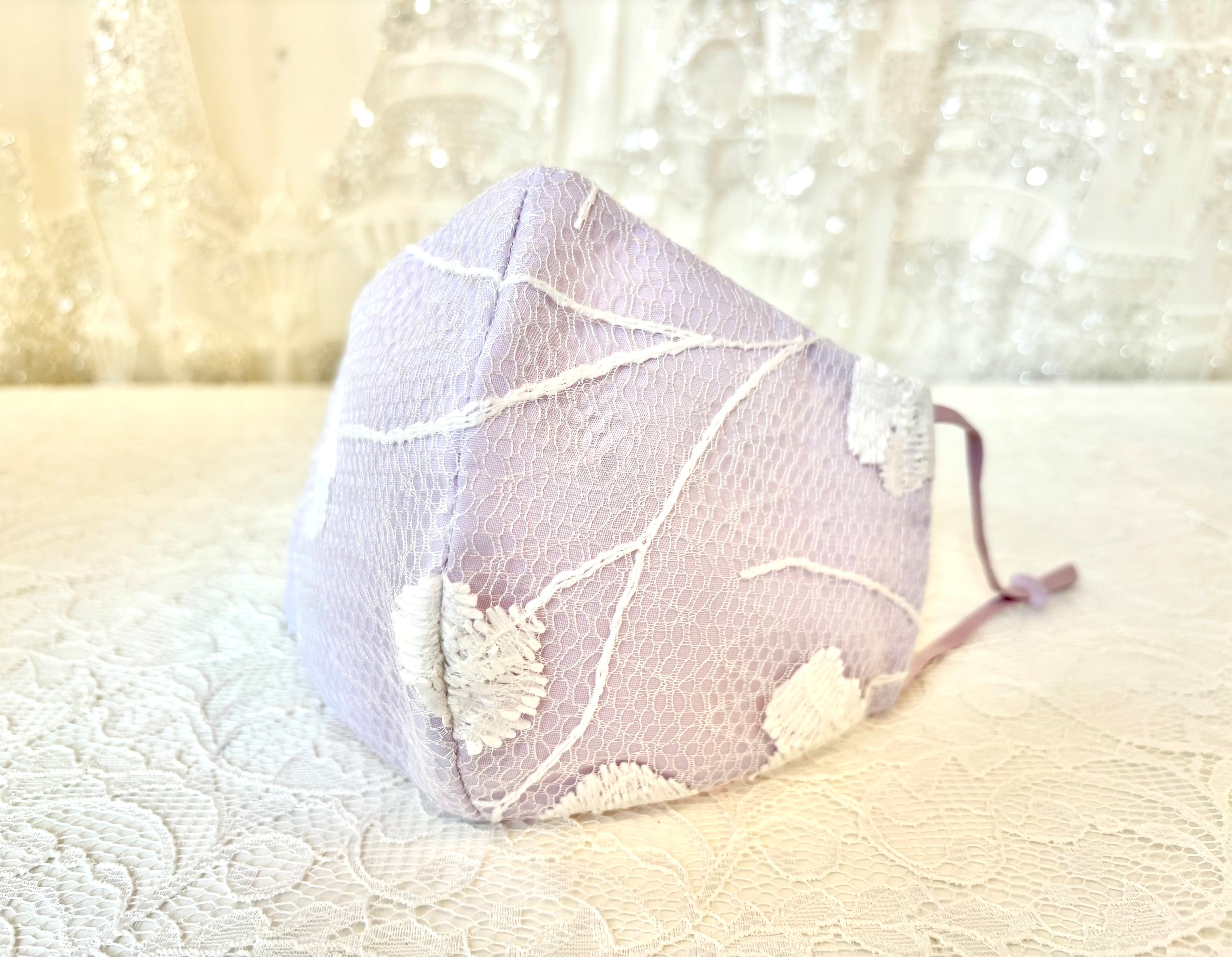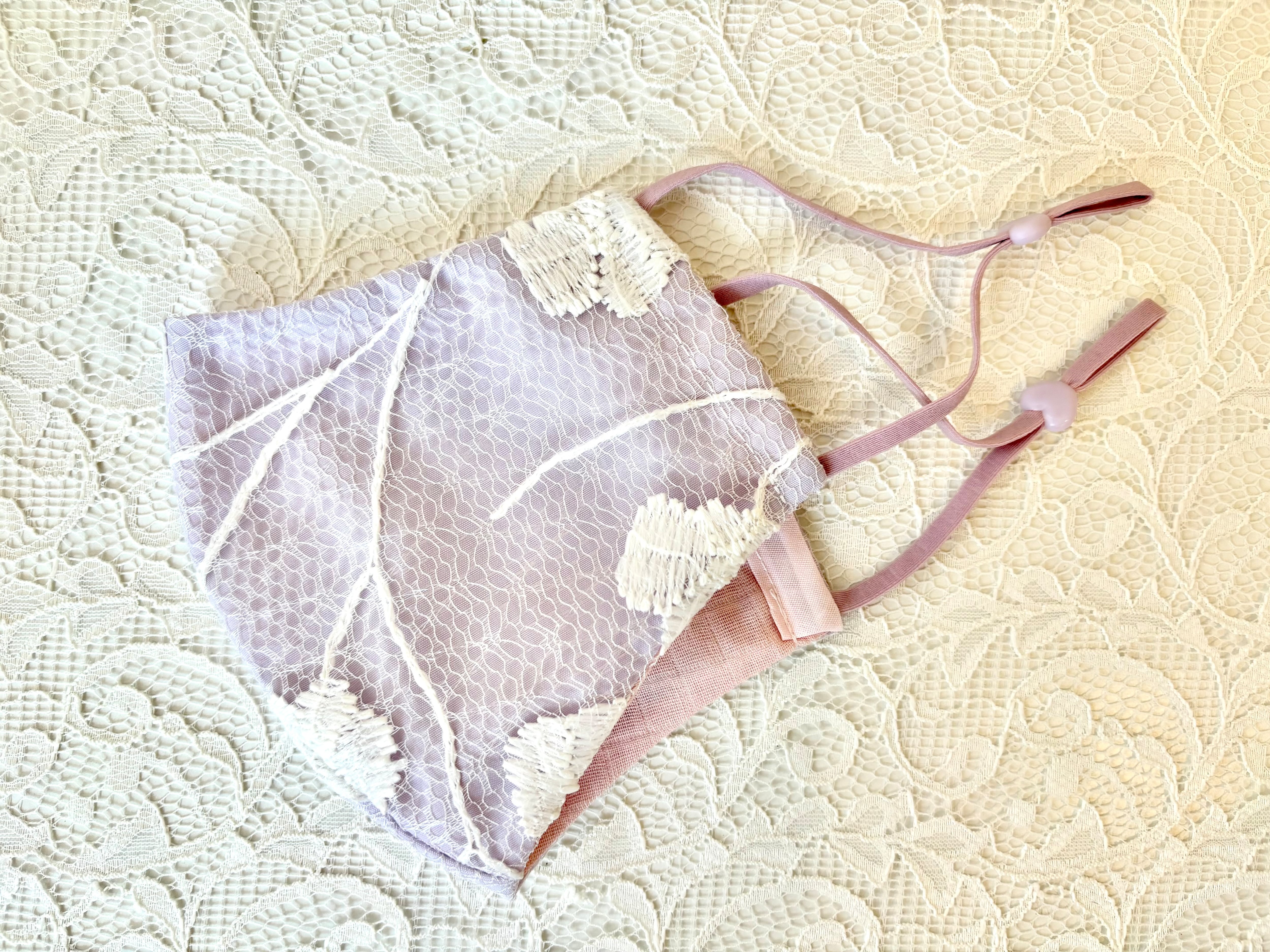 ガーゼにトルコの高級レースを重ねた、かわいらしいデザインのクレンゼマスクです。