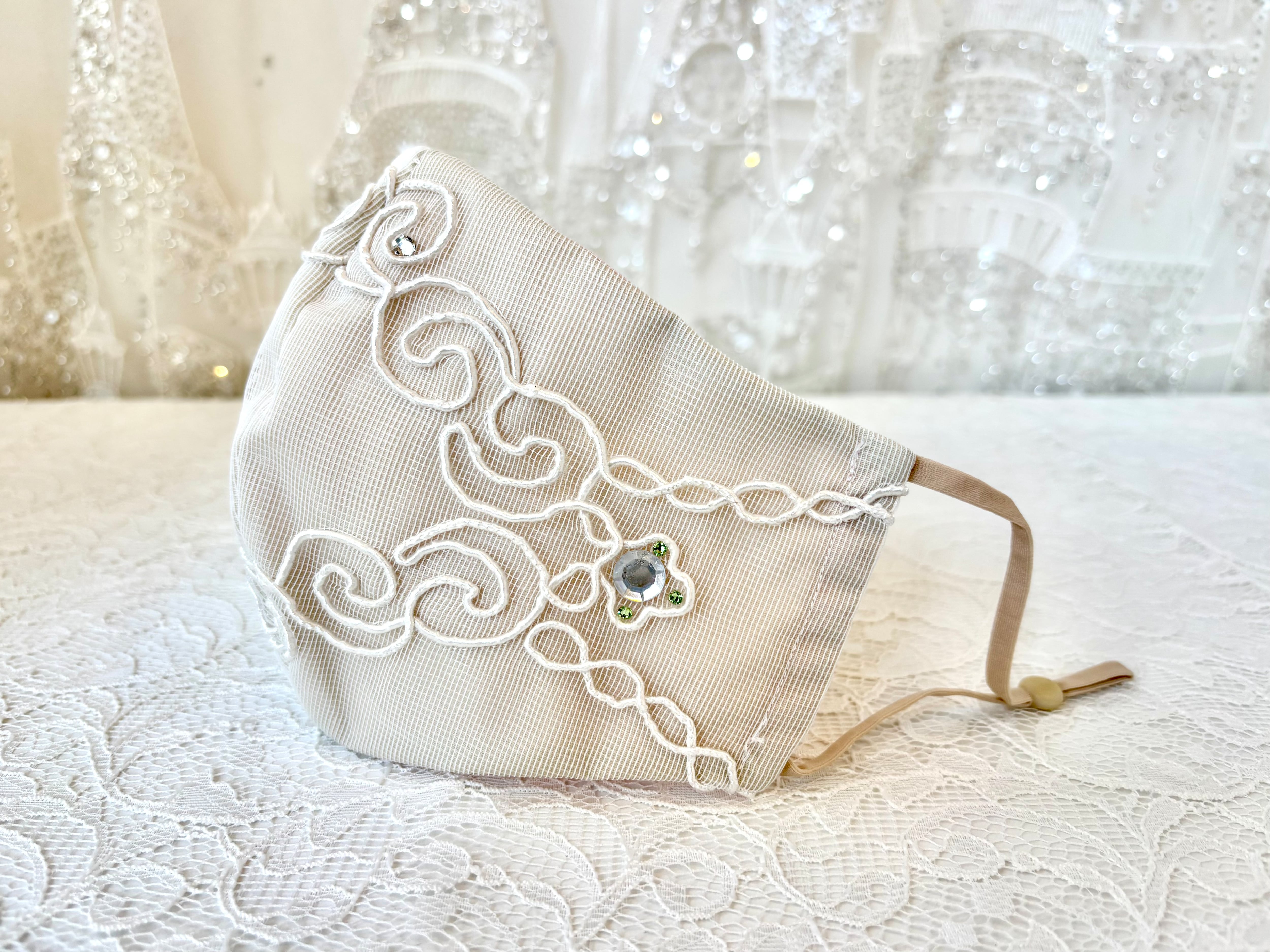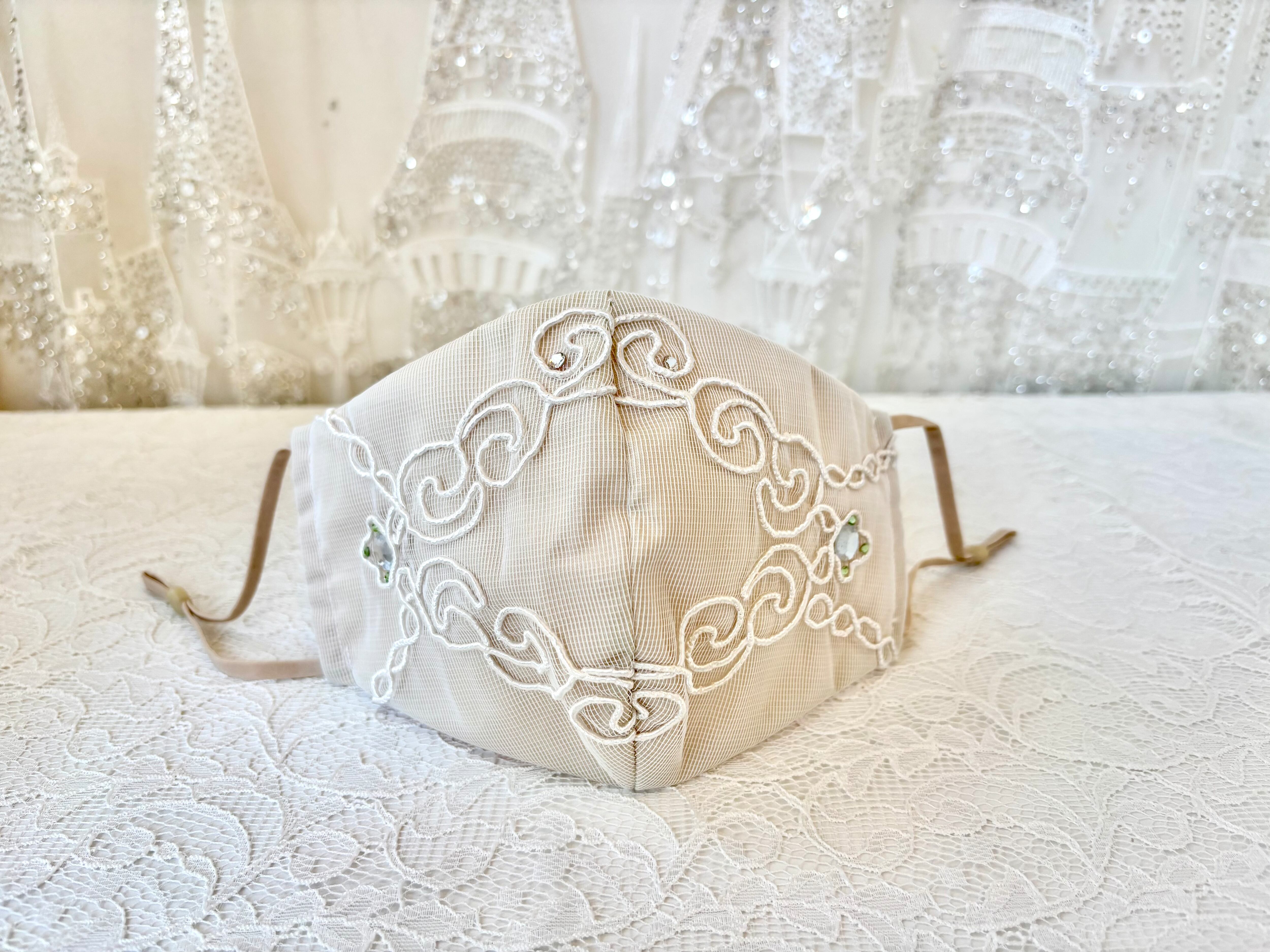 このマスクはトルコのカーテンレースを使用したアップサイクル商品で、環境にも配慮しています。