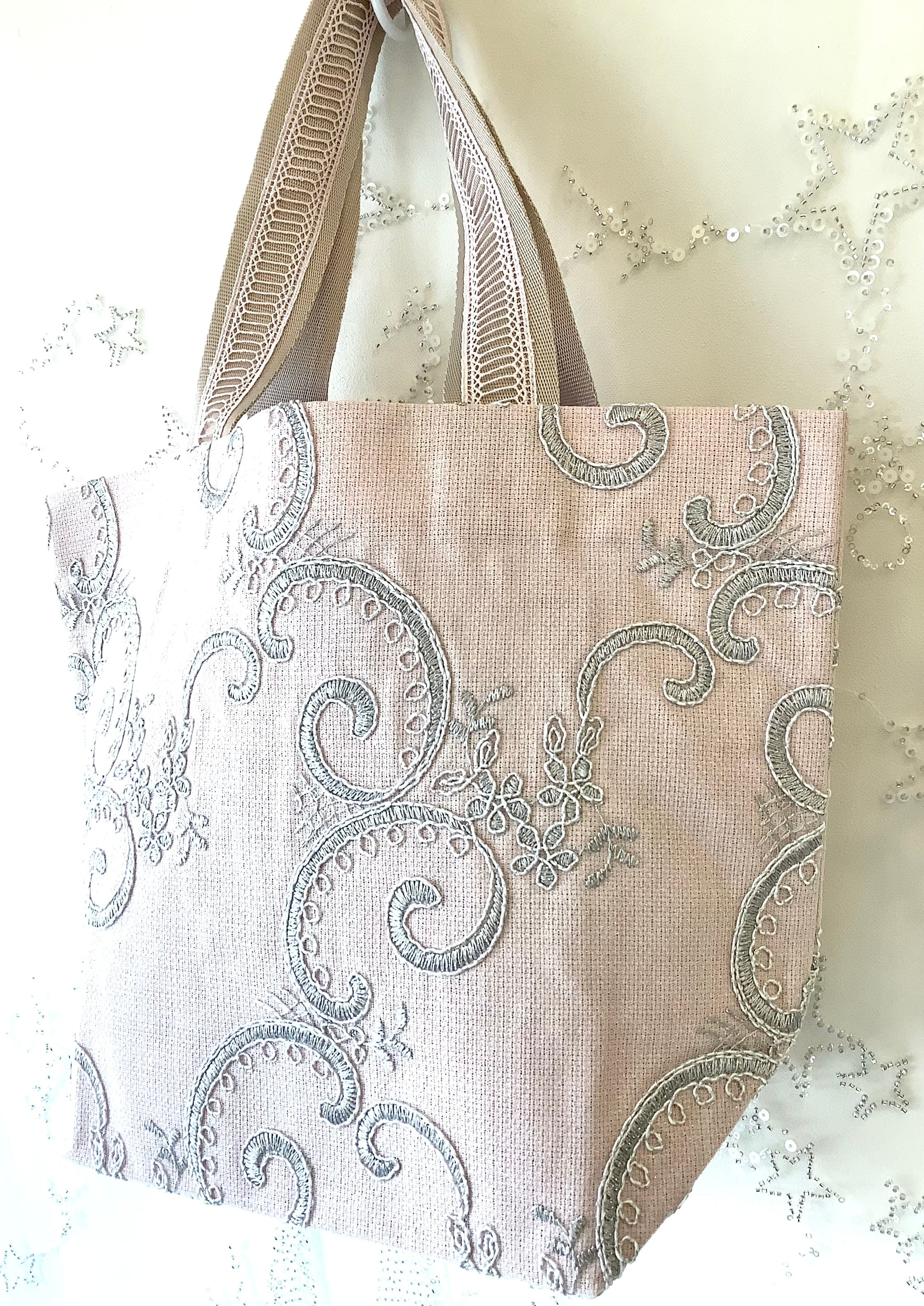 手作りの温かみが感じられるマーケットバッグのご紹介です。トルコのカーテンレースを使用しており、一つ一つ手作業で作られたアップサイクル商品です。お買い物や旅行など荷物が多い方にもぴったりの大きなバッグで、裏地もしっかりついています。内側にはかわいらしいレースポケットも付いていて、小物の収納も便利です。持ち手は長めに設計されており、肩にもかけられます。持ち手にもレースがあしらわれているので、ファッションアイテムとしてもおしゃれに活躍します。ぜひお気に入りのカーテンレースマーケットバッグを手に入れて、おしゃれなスタイリングを楽しんでみてください。