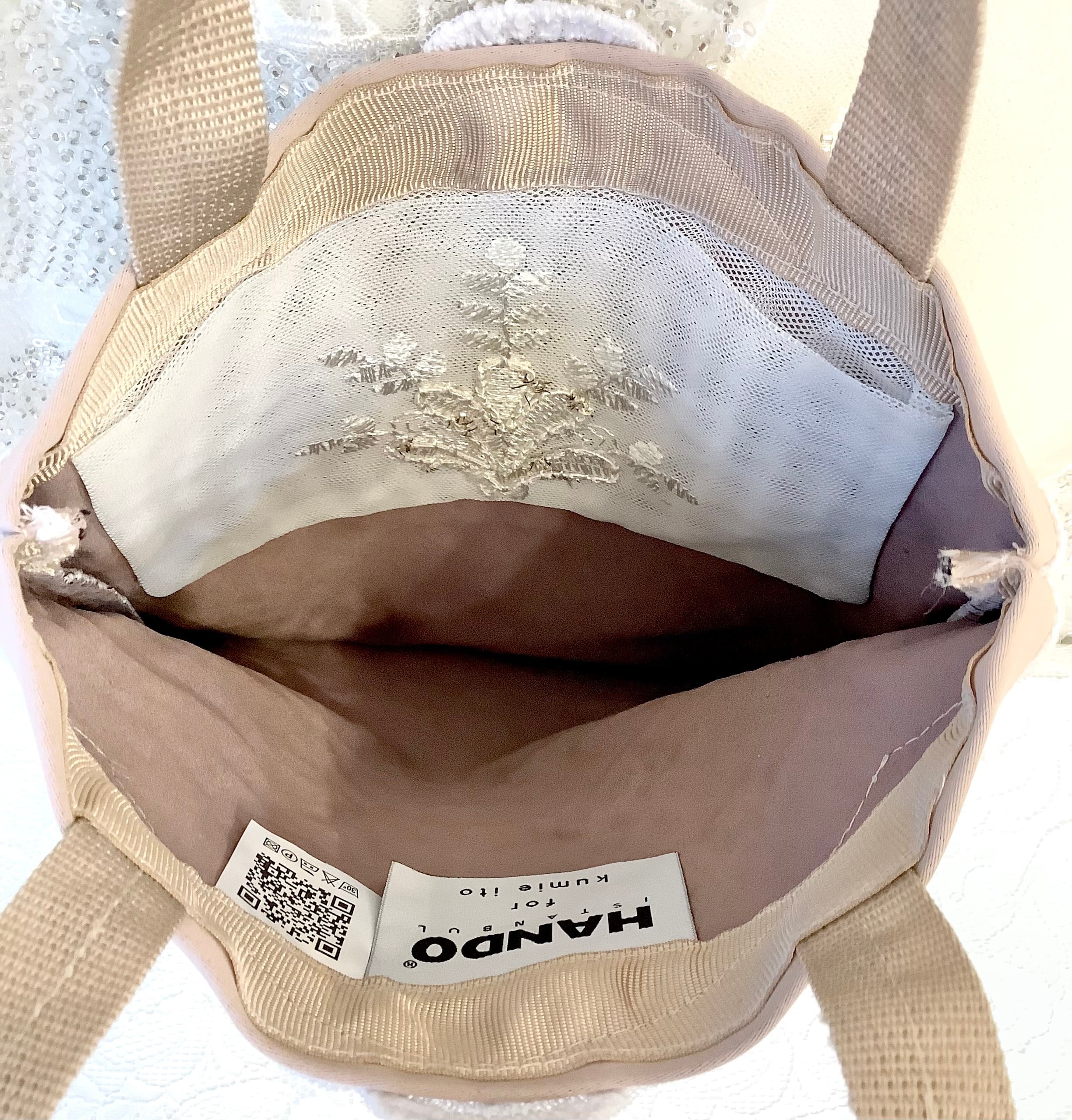 マチもあるので、かさばる羽織ものやショールなどもすっぽりおさまる。華やかなサブバッグにもおすすめです。