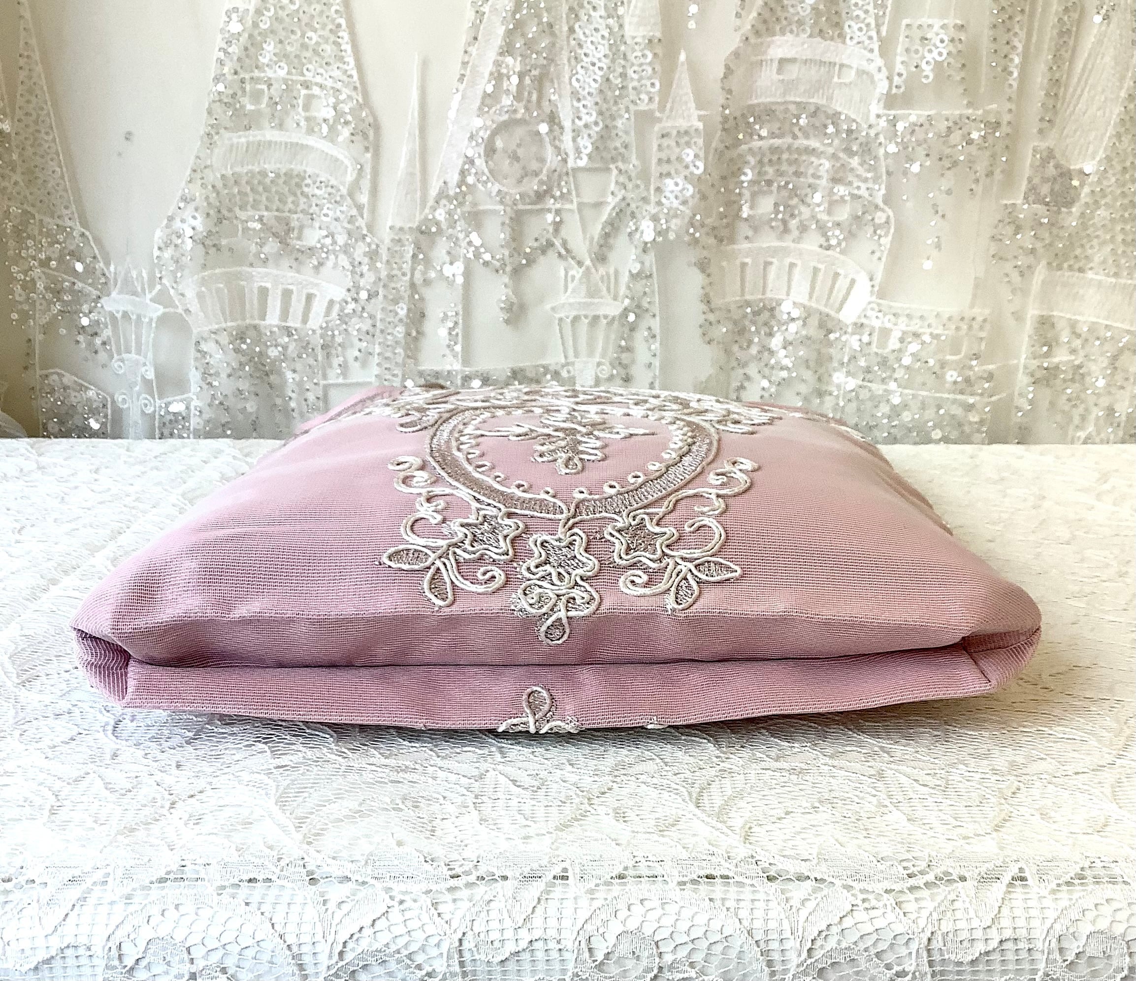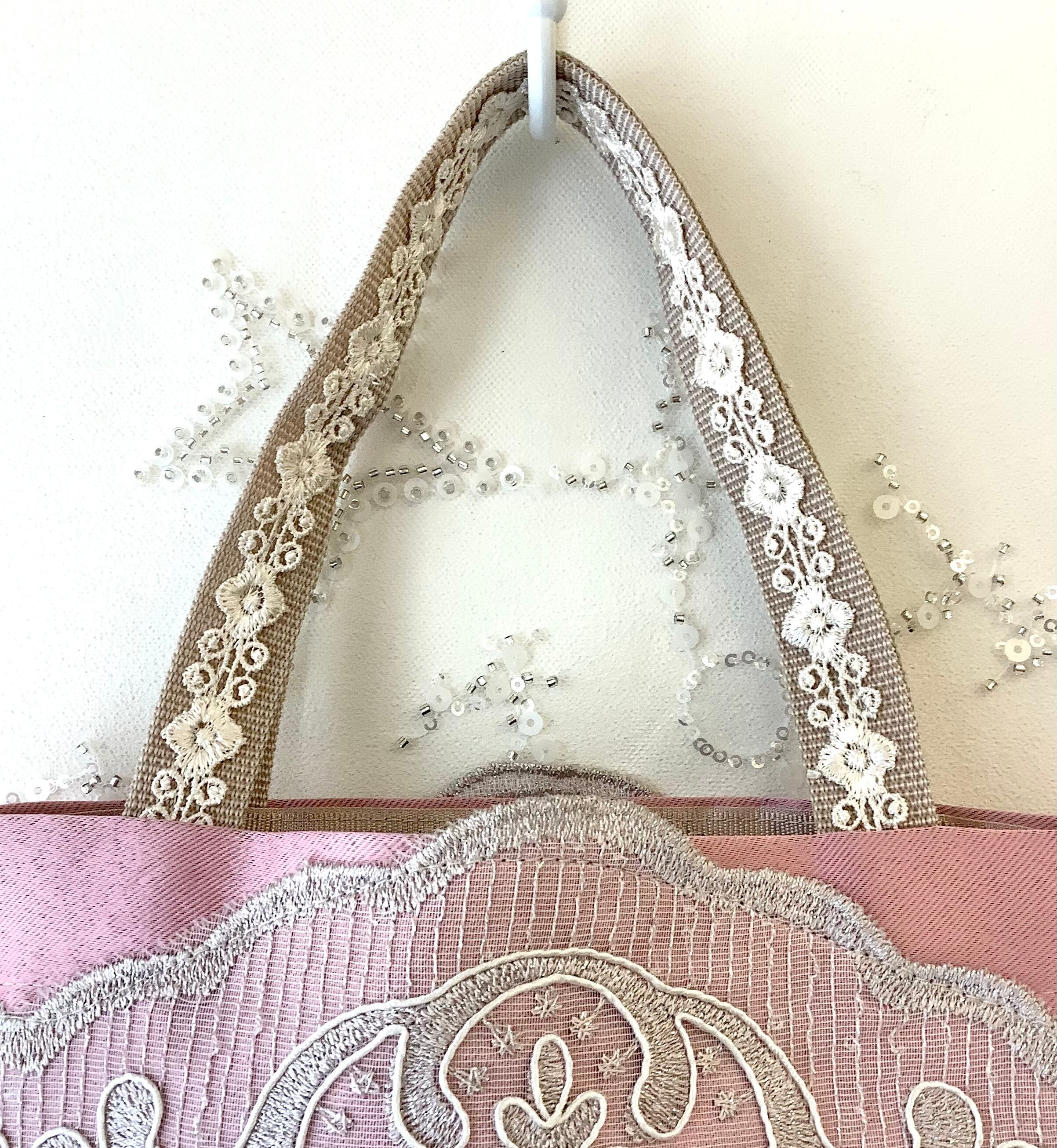 マチもあるので、かさばる羽織ものやショールなどもすっぽりおさまる。華やかなサブバッグにもおすすめです。