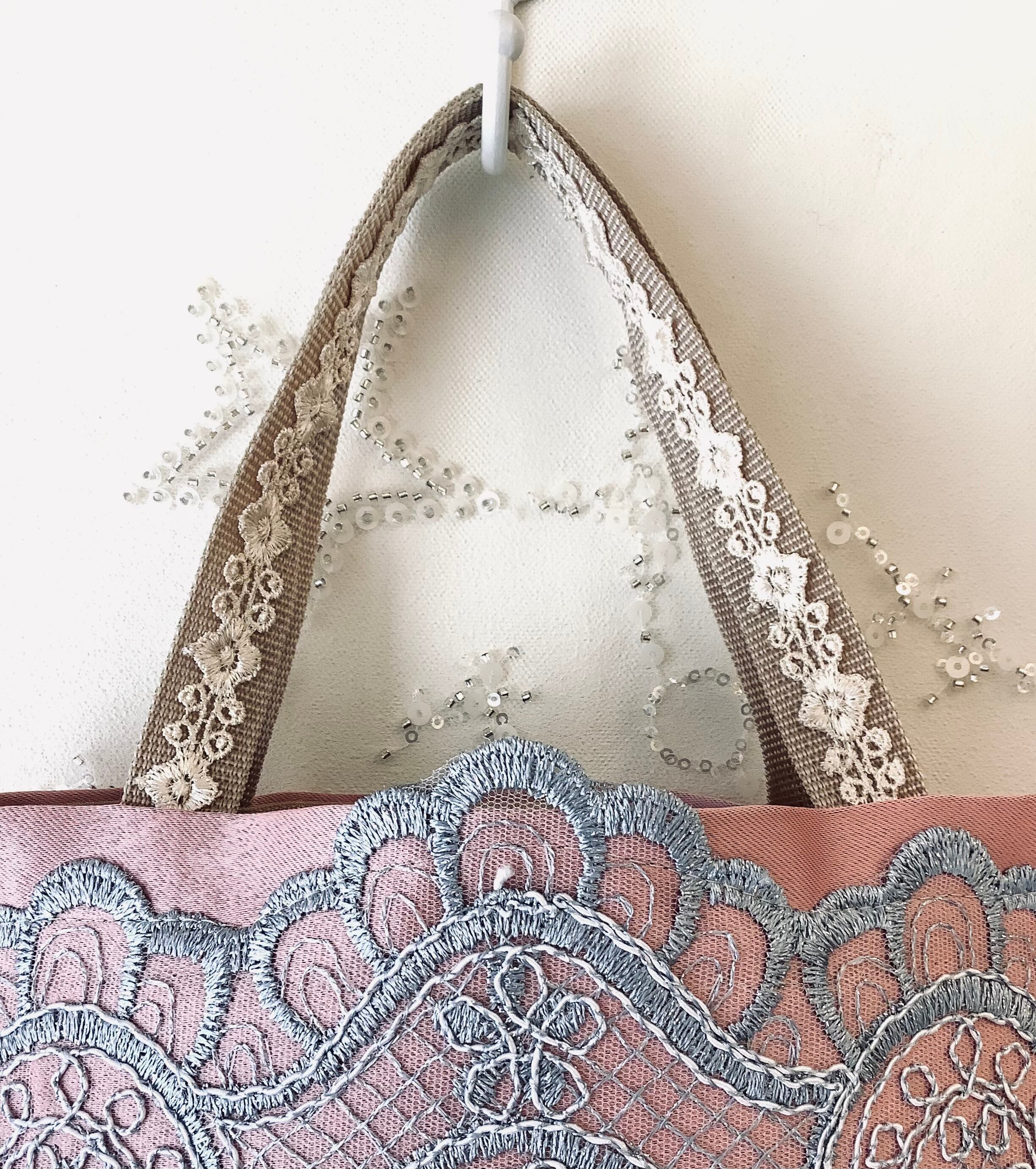 マチもあるので、かさばる羽織ものやショールなどもすっぽりおさまる。華やかなサブバッグにもおすすめです。