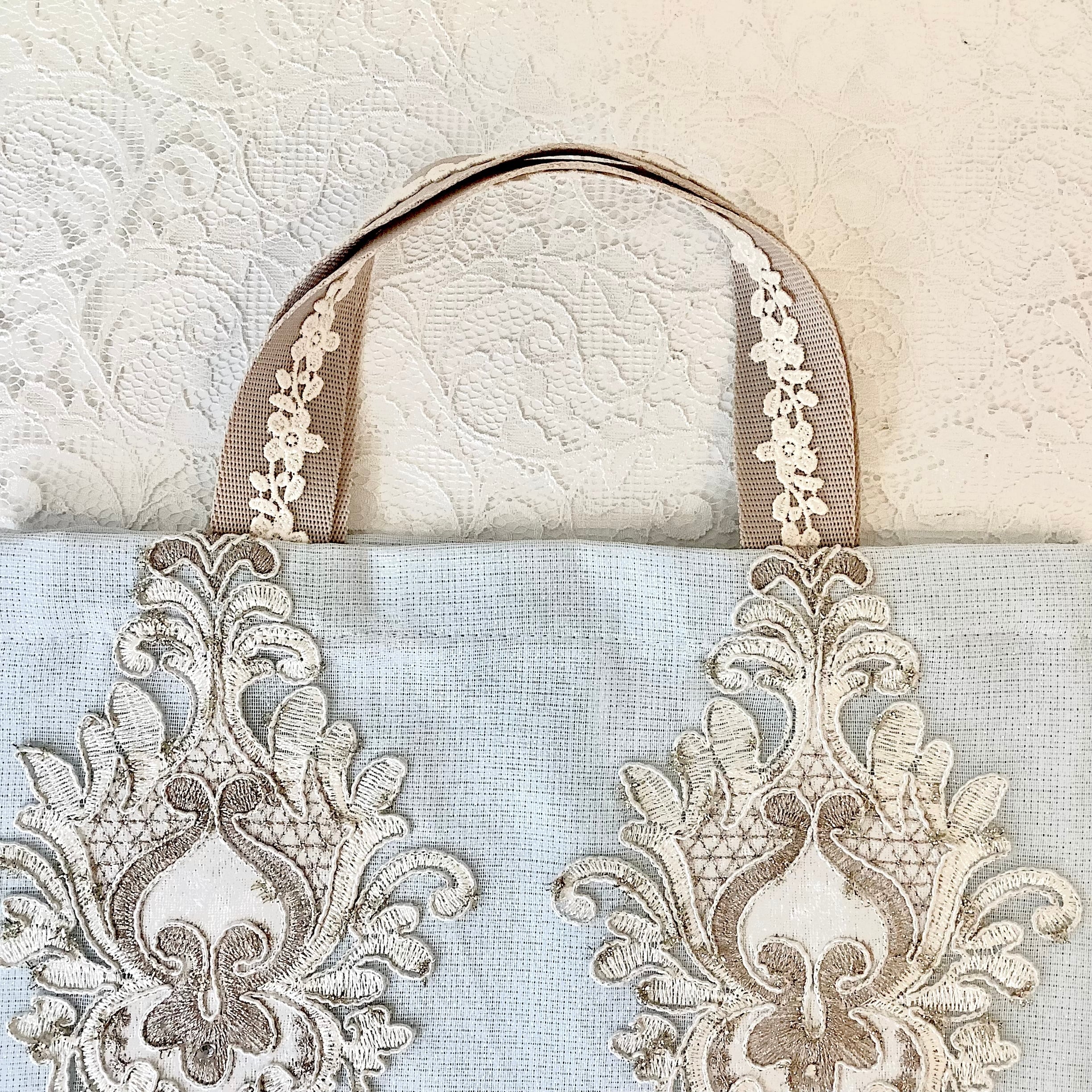 キャサリンは、トルコの高級カーテンレースを使用して作られたアップサイクル商品です。