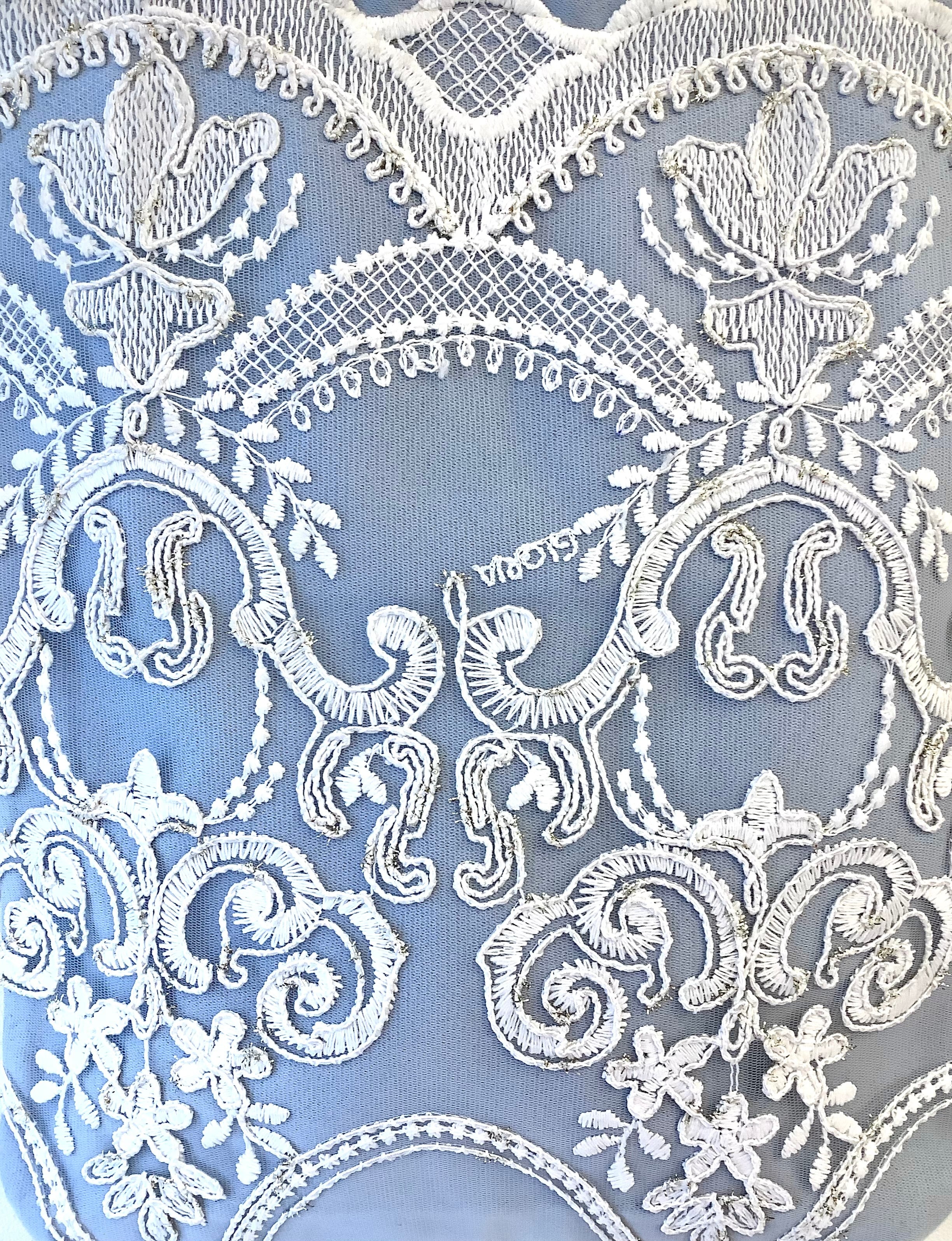 優雅なオートクチュールのレースカーテン生地の裁断残りから、