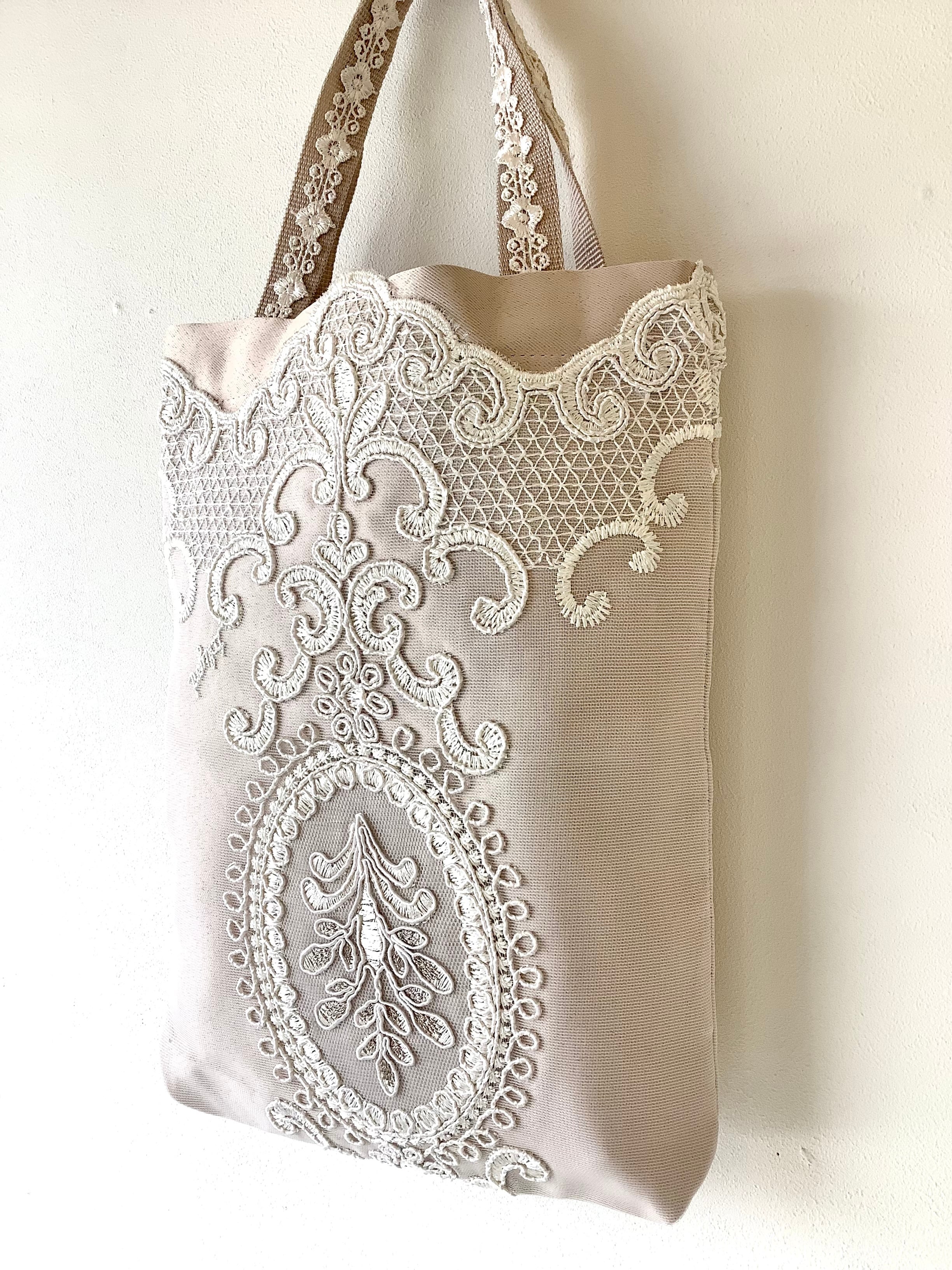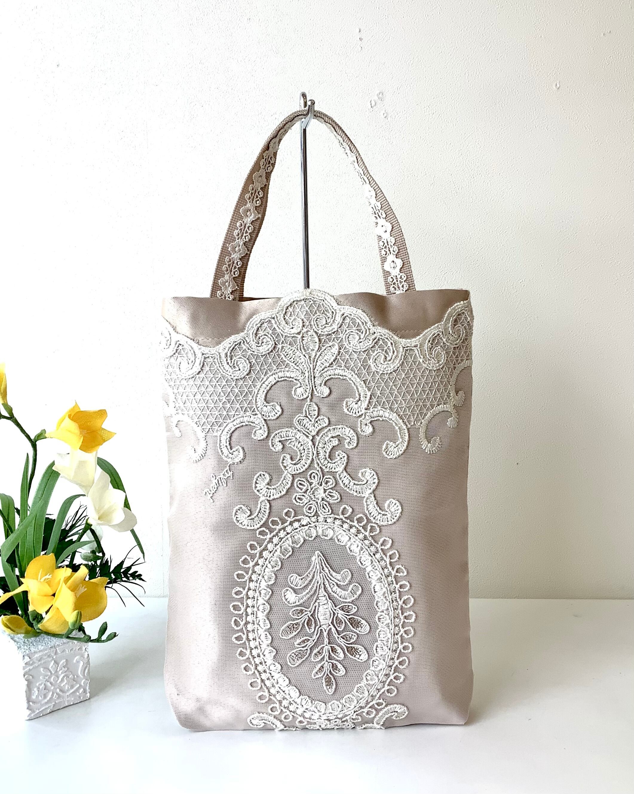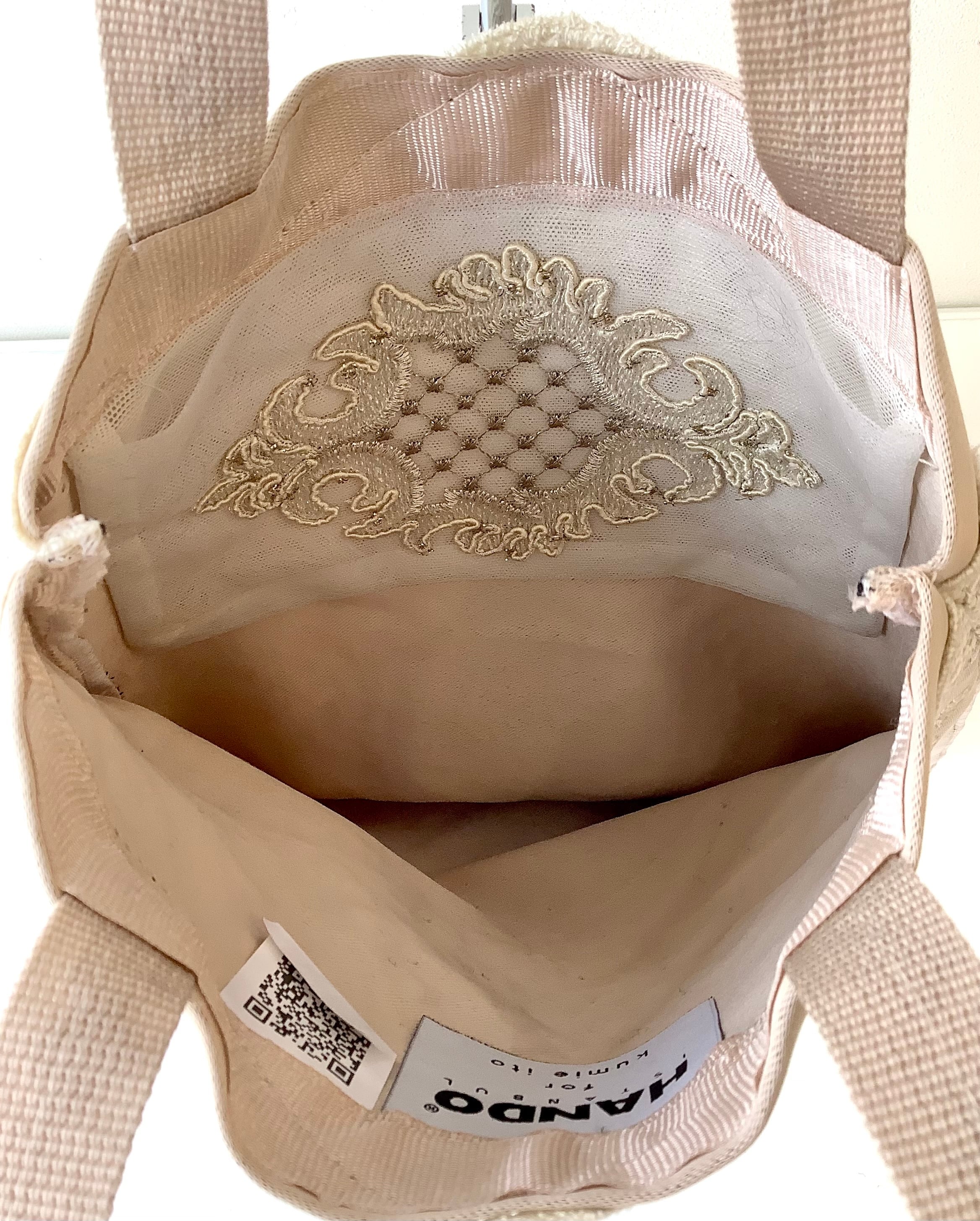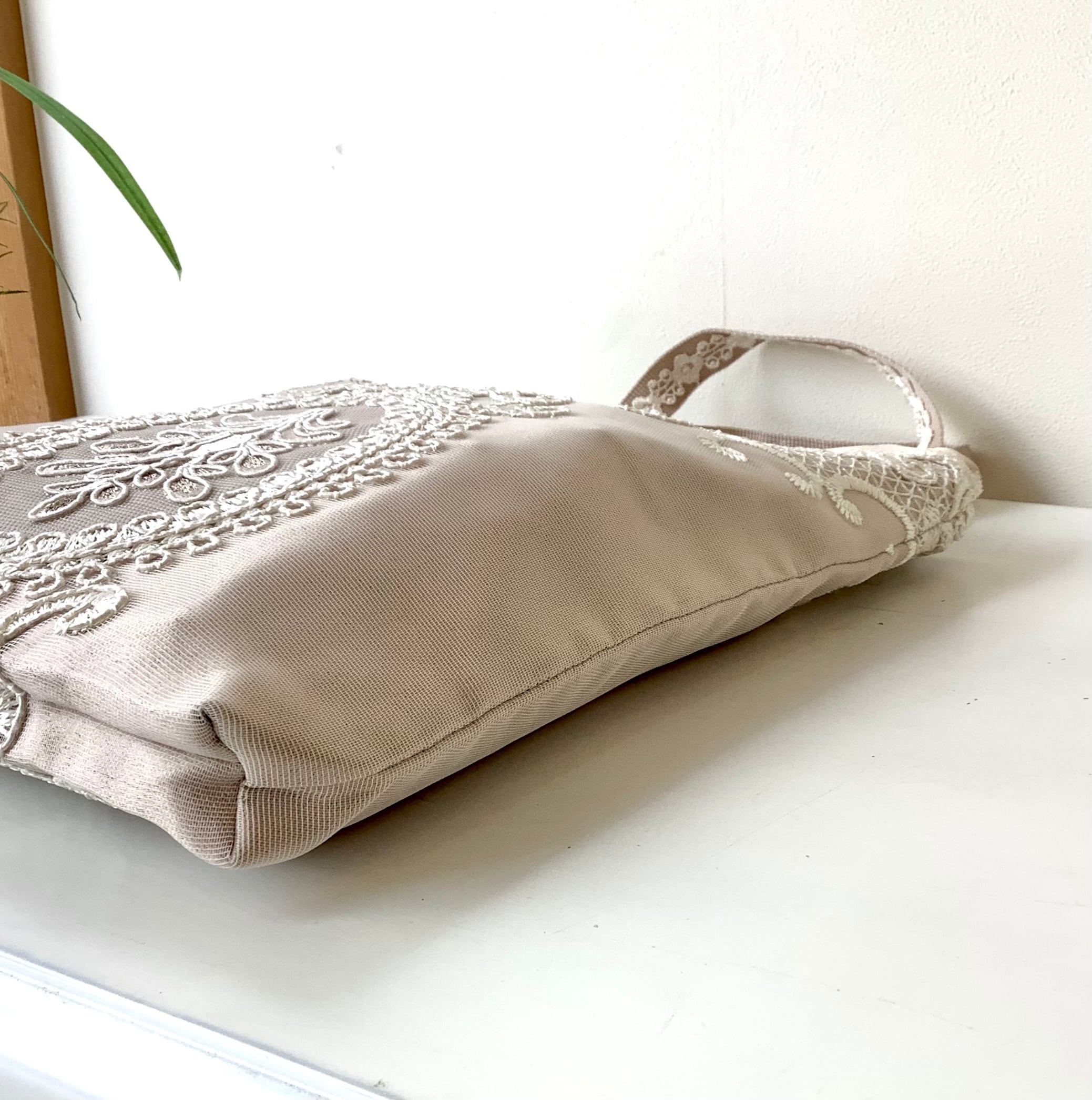 マチもあるので、かさばる羽織ものやショールなどもすっぽりおさまる。華やかなサブバッグにもおすすめです。