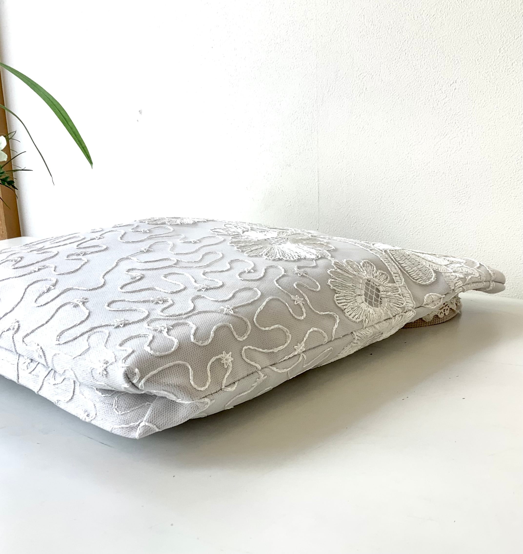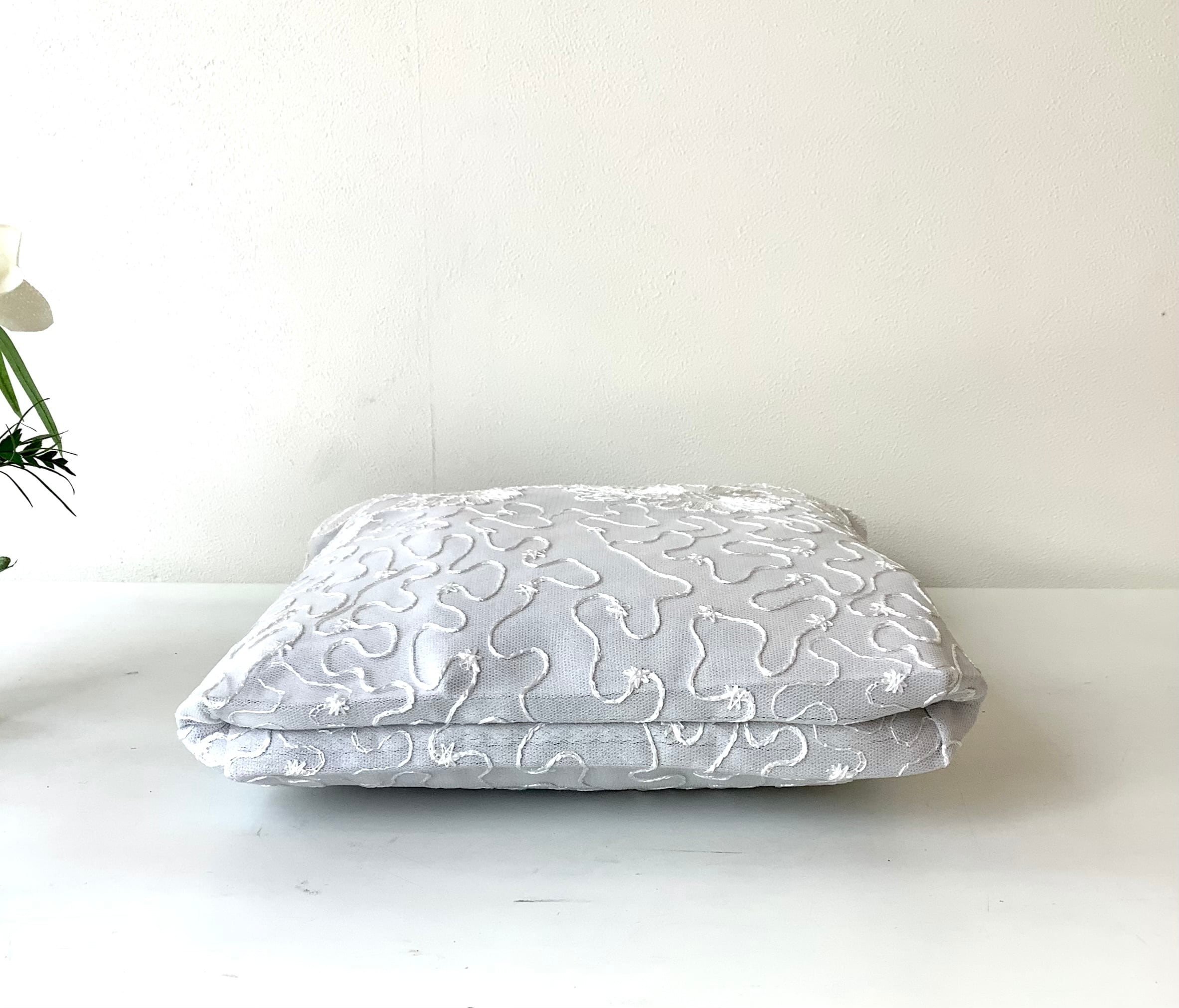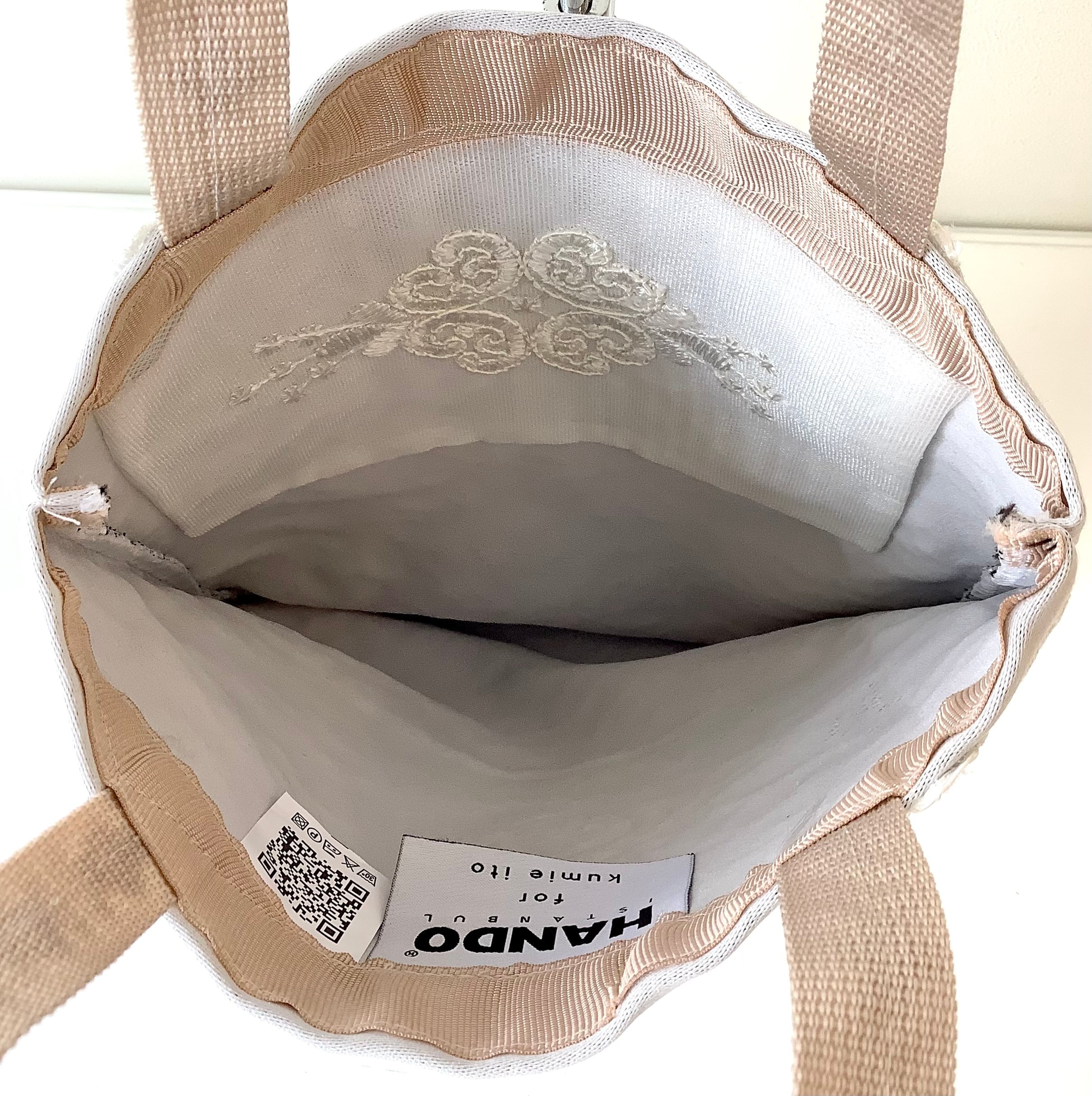 マチもあるので、かさばる羽織ものやショールなどもすっぽりおさまる。華やかなサブバッグにもおすすめです。