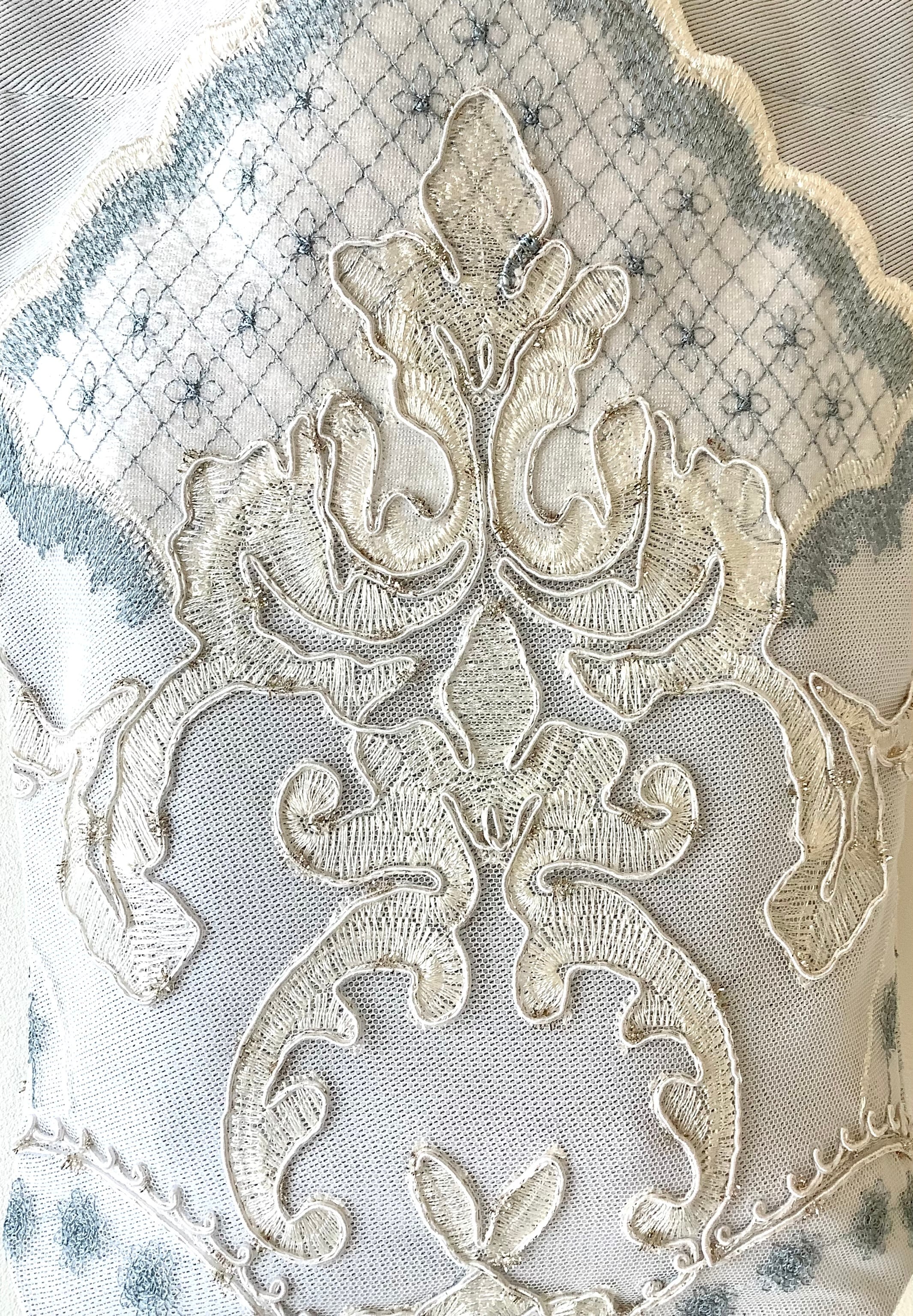 優雅なオートクチュールのレースカーテン生地の裁断残りから、