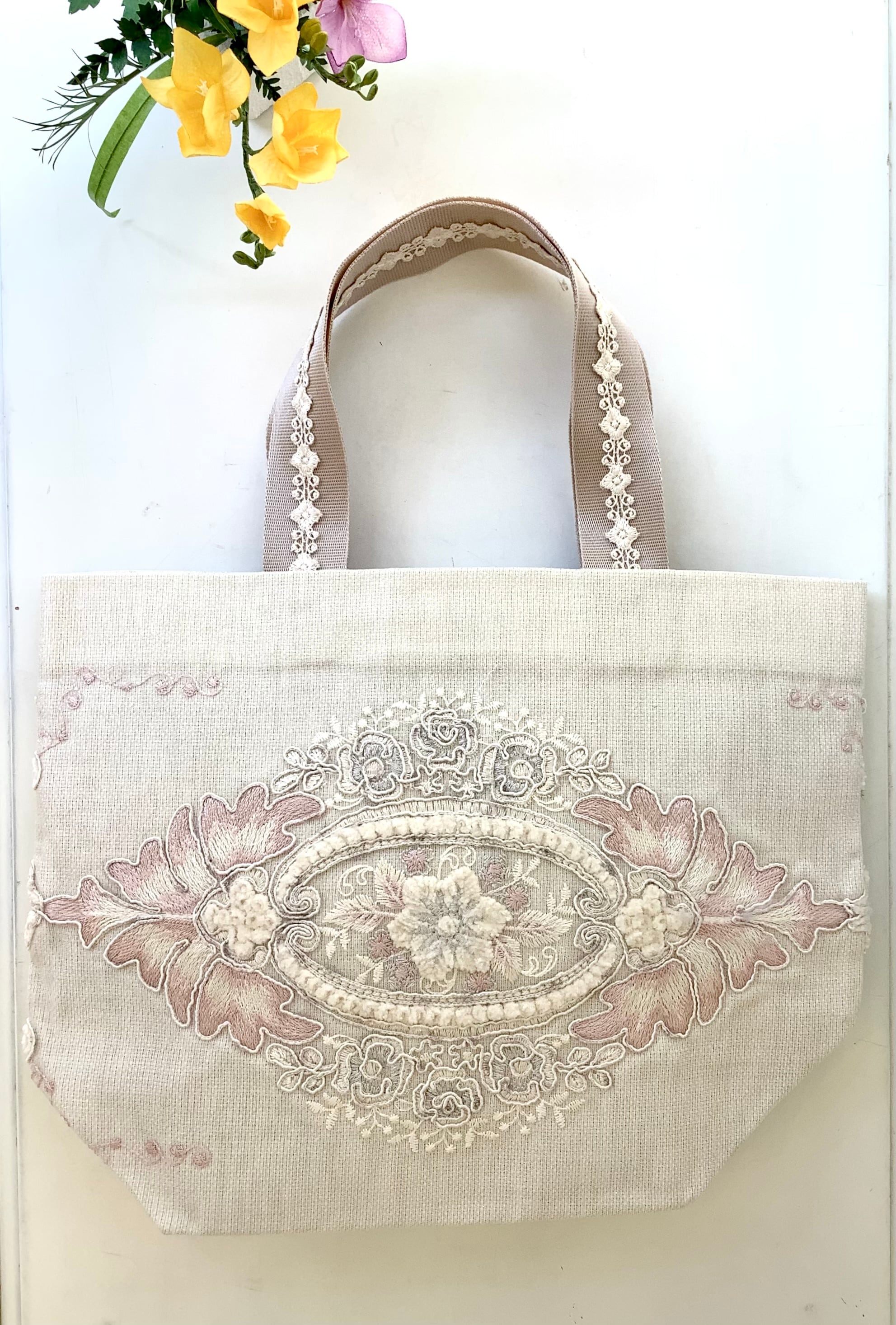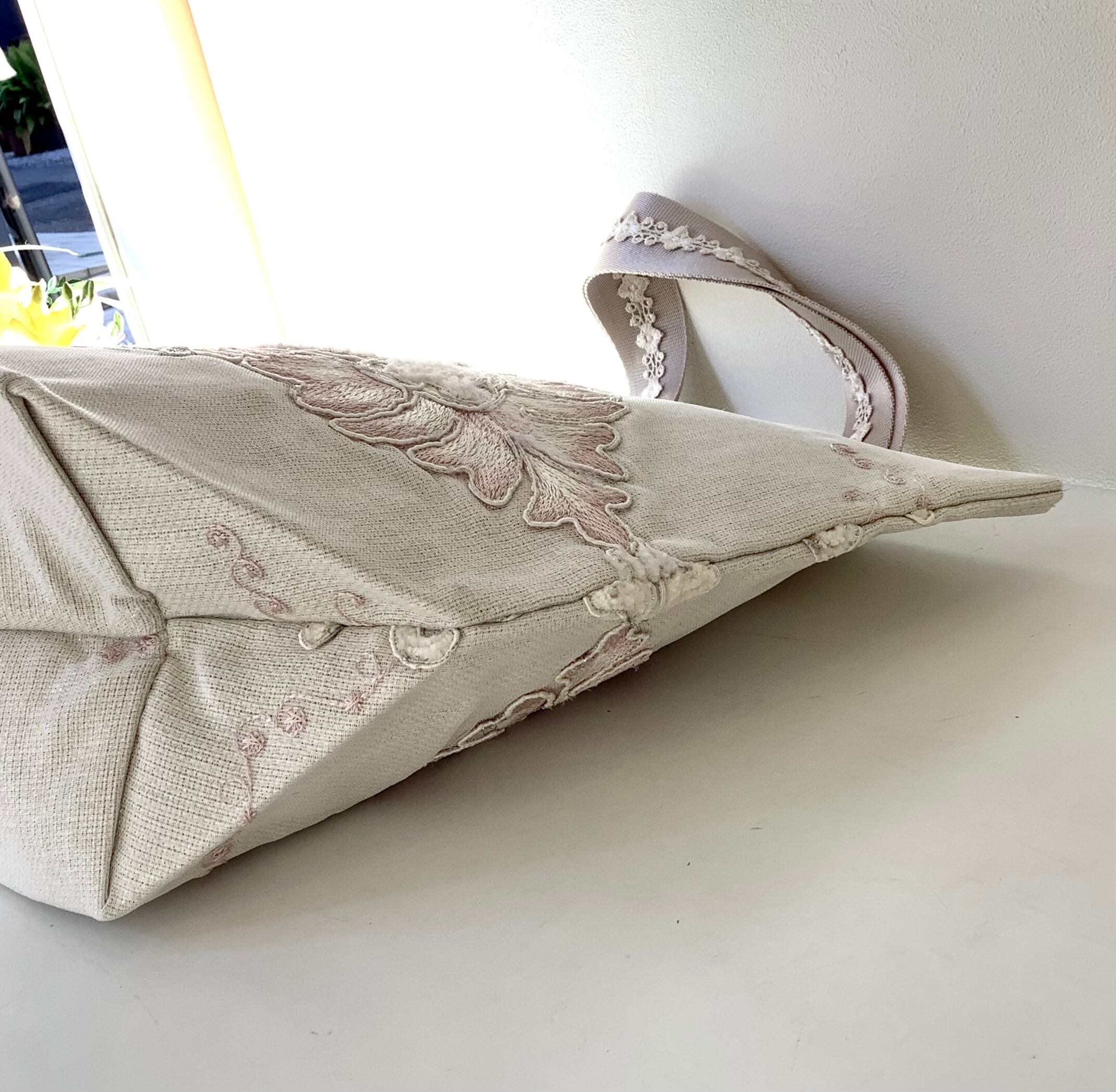 手作りの温かみが感じられるマーケットバッグのご紹介です。トルコのカーテンレースを使用しており、一つ一つ手作業で作られたアップサイクル商品です。お買い物や旅行など荷物が多い方にもぴったりの大きなバッグで、裏地もしっかりついています。内側にはかわいらしいレースポケットも付いていて、小物の収納も便利です。持ち手は長めに設計されており、肩にもかけられます。持ち手にもレースがあしらわれているので、ファッションアイテムとしてもおしゃれに活躍します。ぜひお気に入りのカーテンレースマーケットバッグを手に入れて、おしゃれなスタイリングを楽しんでみてください。